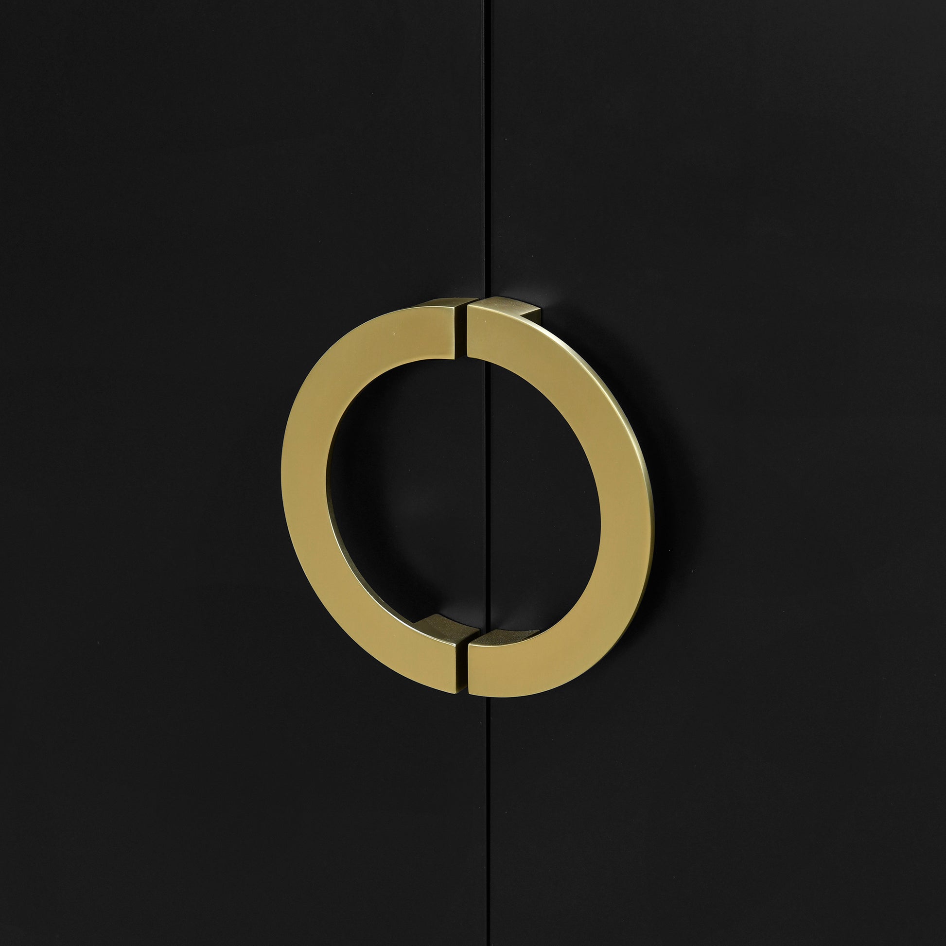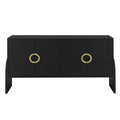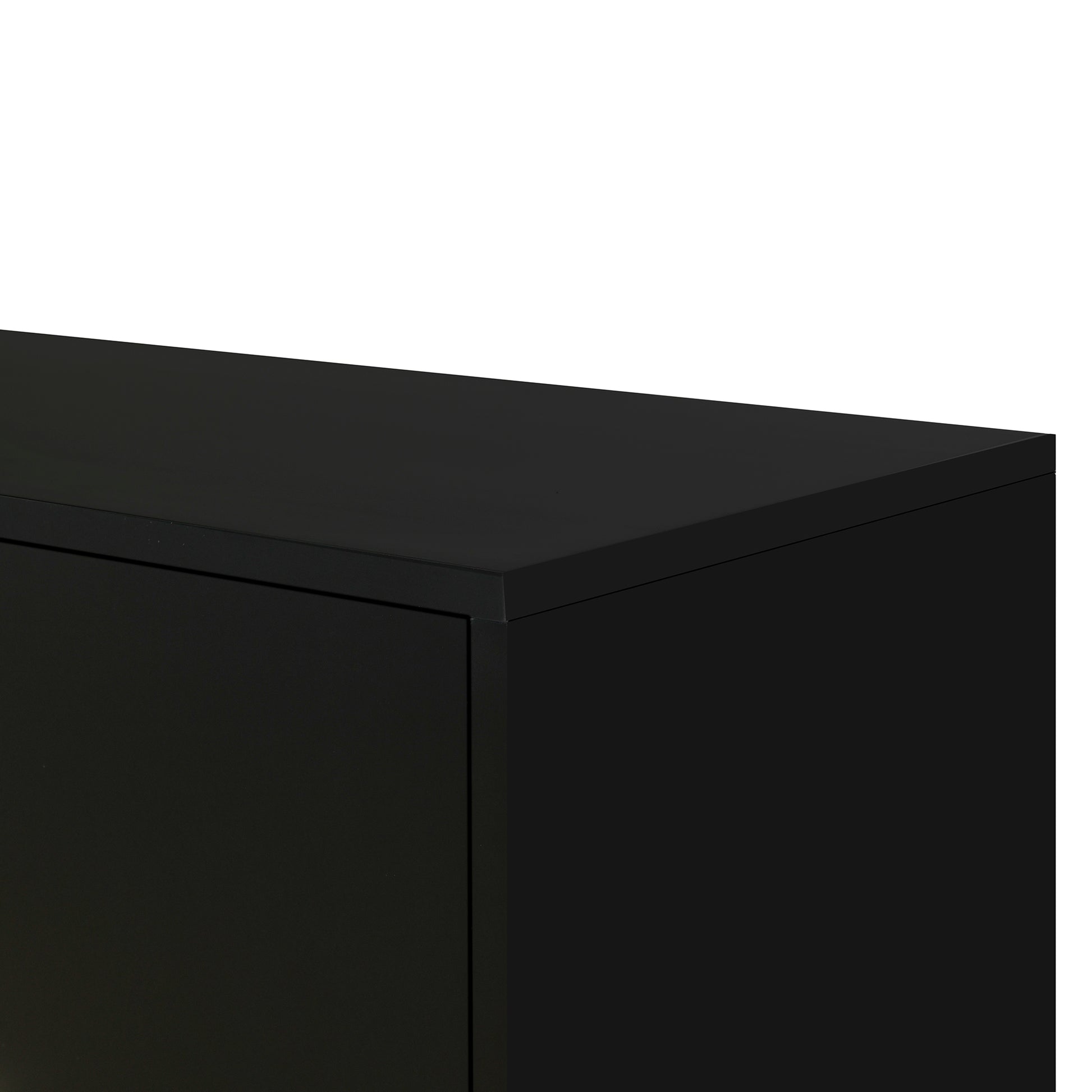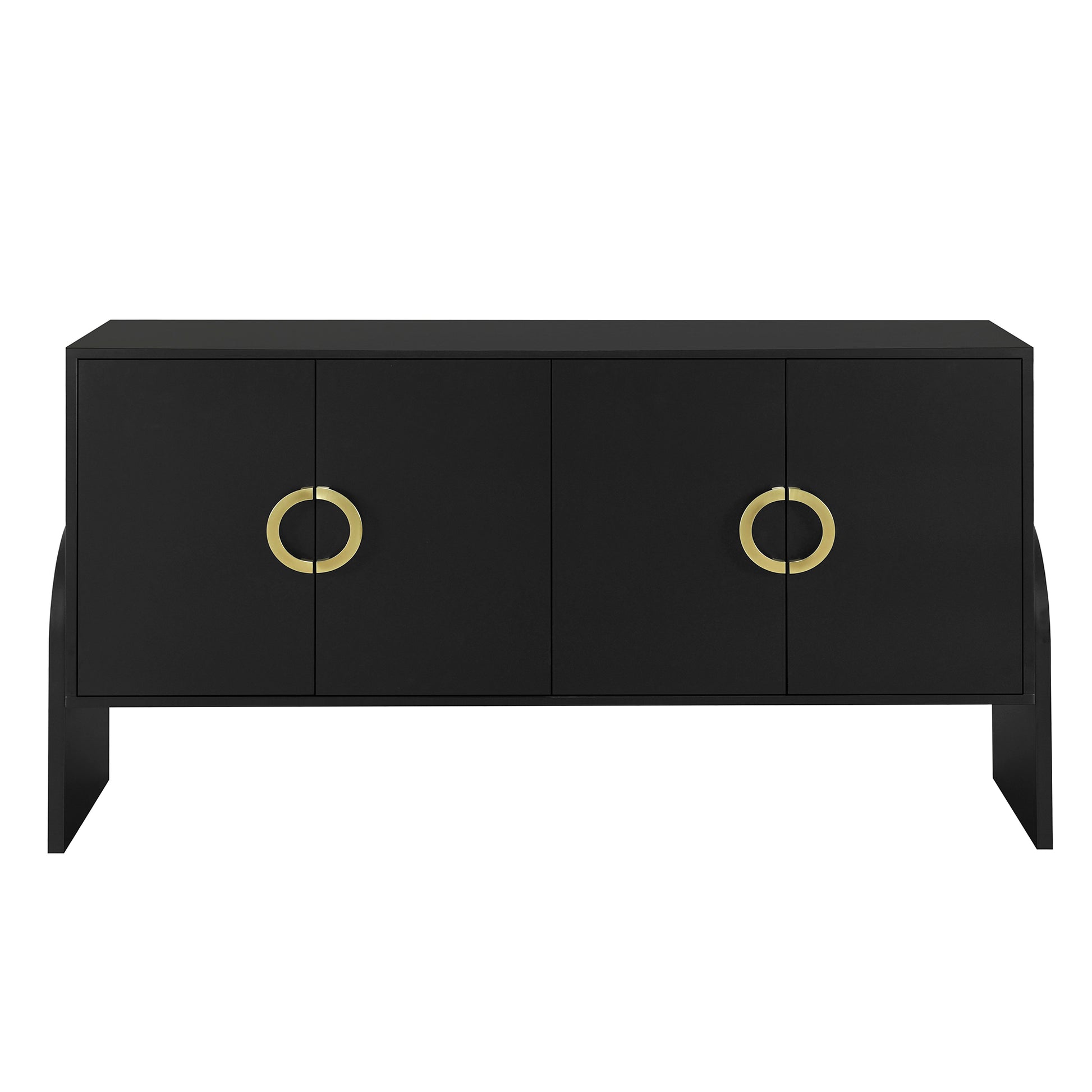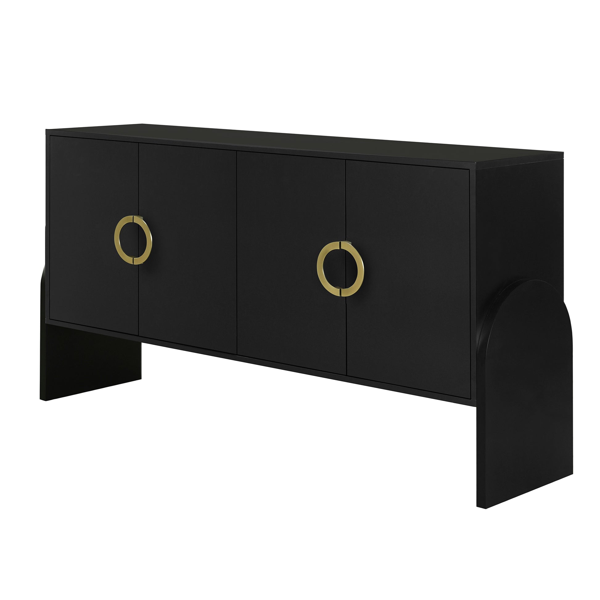 Four Door Metal Handle Storage Cabinet, Suitable For Study, Living Room, Adjustable Shelf Black Solid Wood Mdf