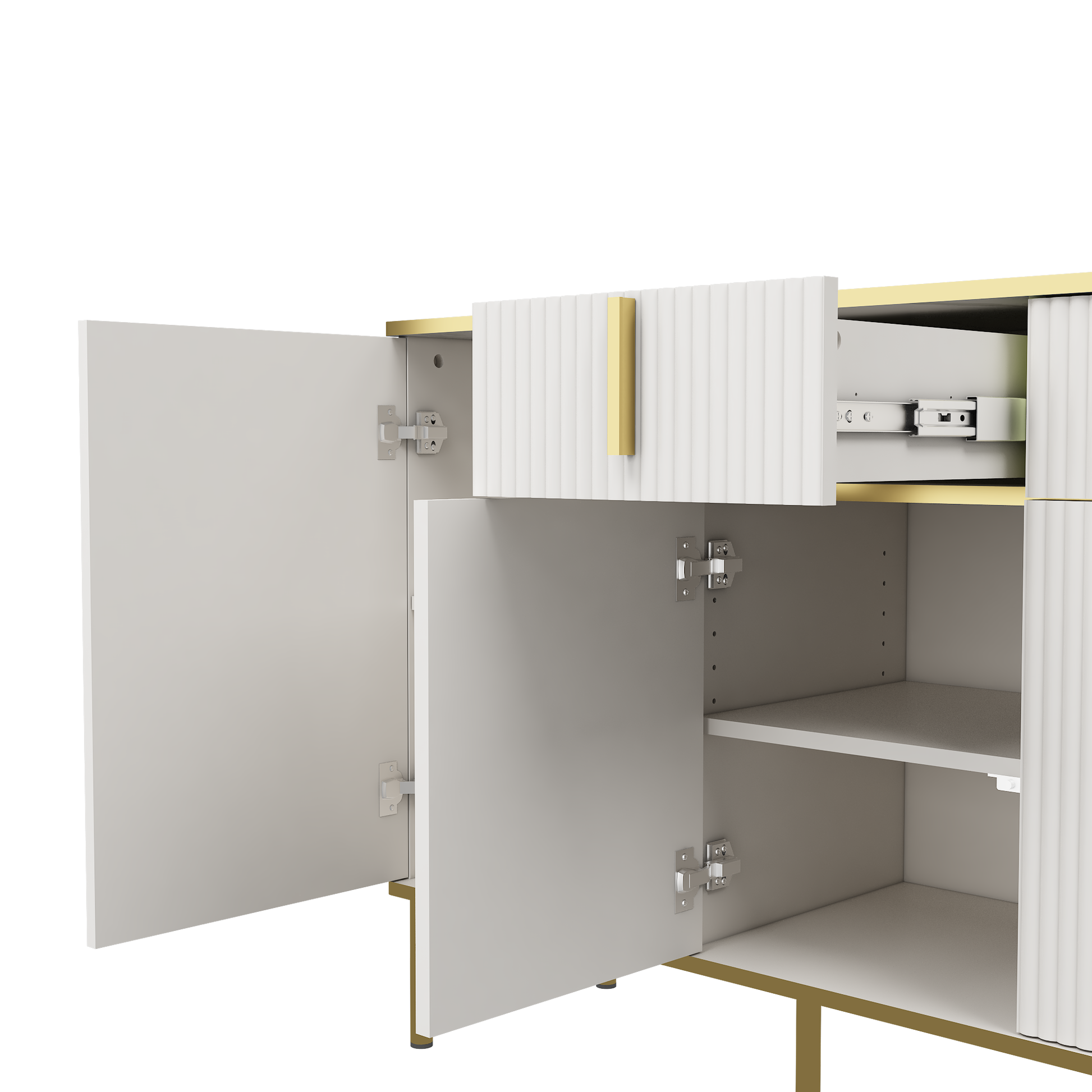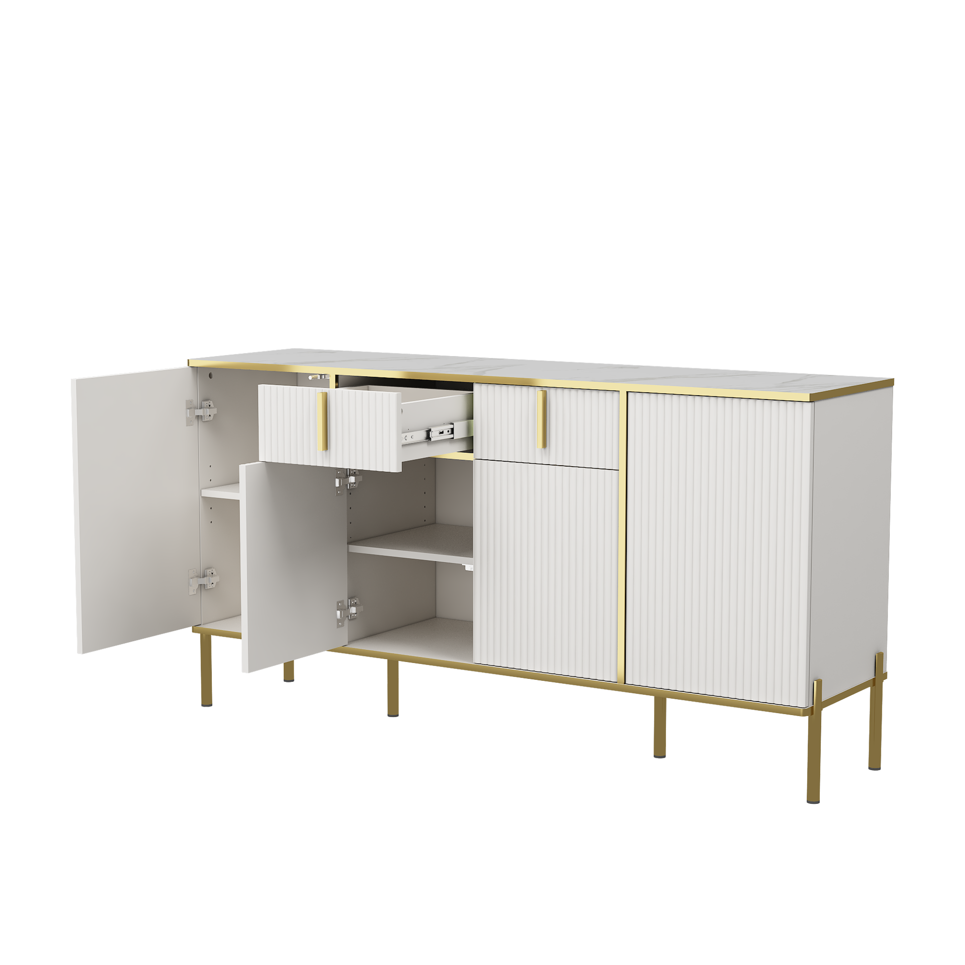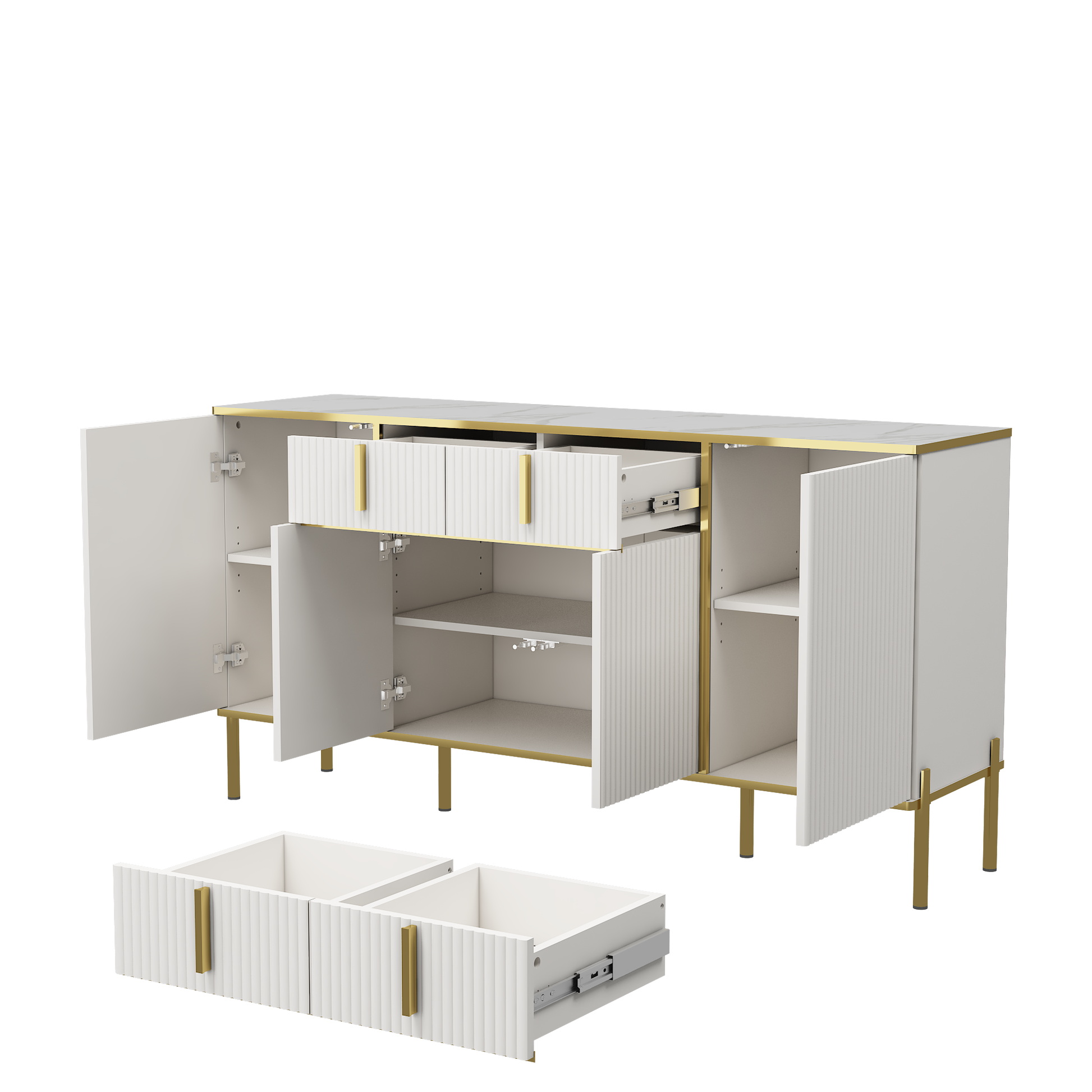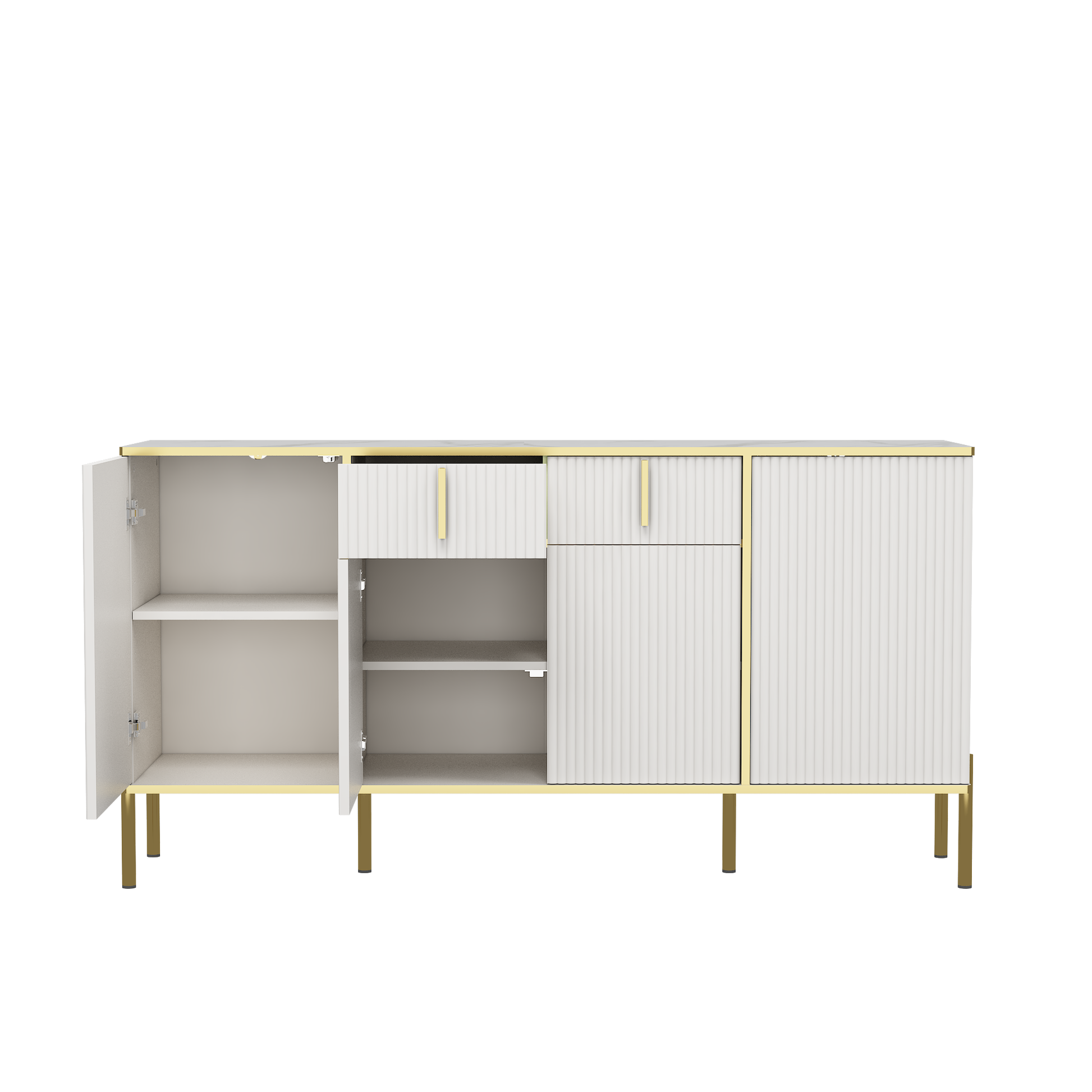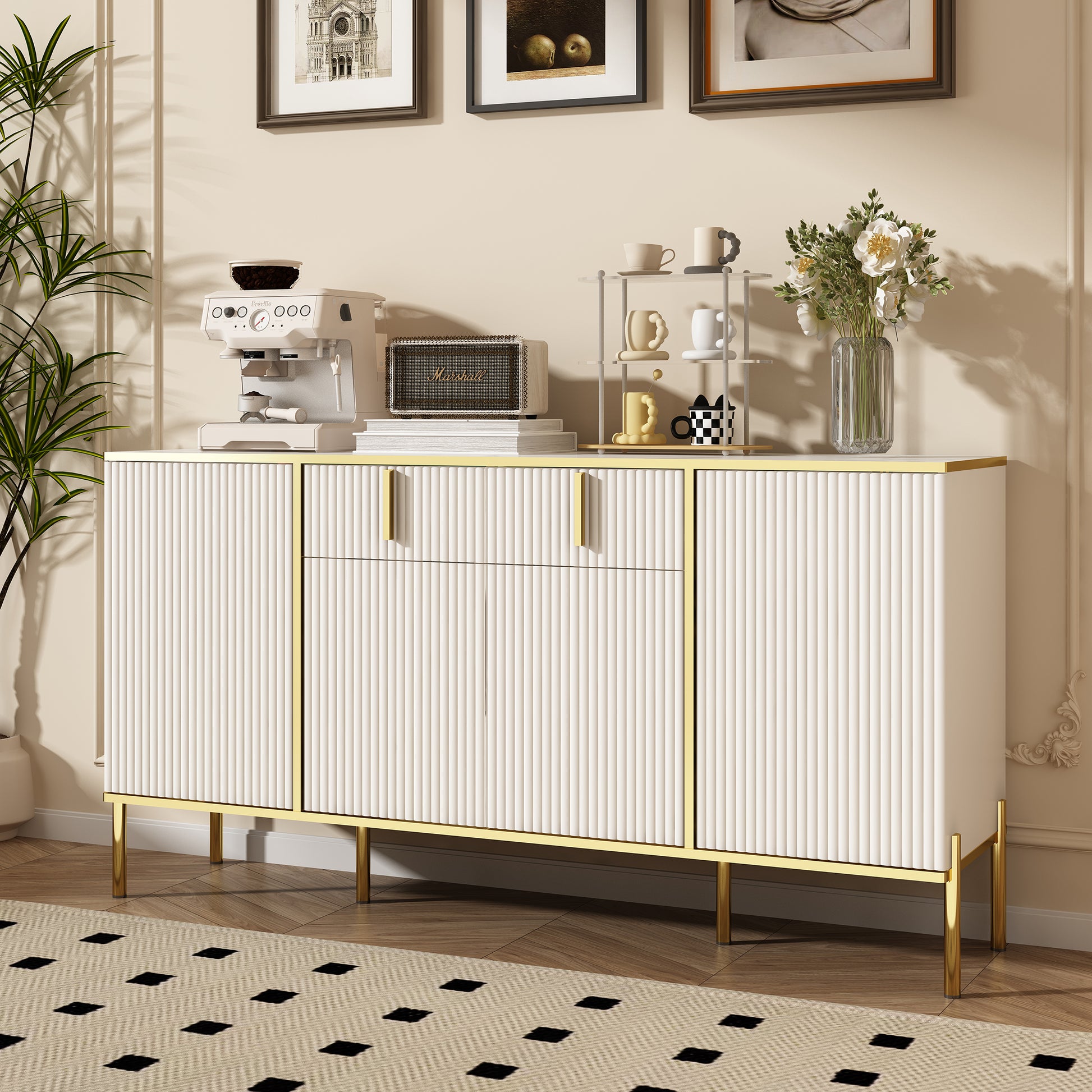 Four Doors And Two Drawers,Modern Sideboard Buffet Cabinet Storage Cabinet For Living Room,Kitchen,Dining Room,Hallway,White White White Dining Room Modern Drawers Included Mdf,Particle Board