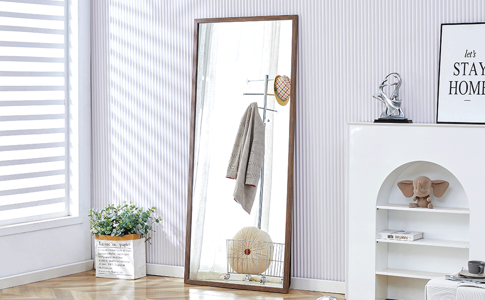 Fourth Generation Solid Wood Frame Full Length Mirror, Dressing Mirror, Bedroom Porch, Decorative Mirror, Clothing Store, Floor Standing Large Mirror, Wall Mounted. 71 "* 31.5" Brown Glass