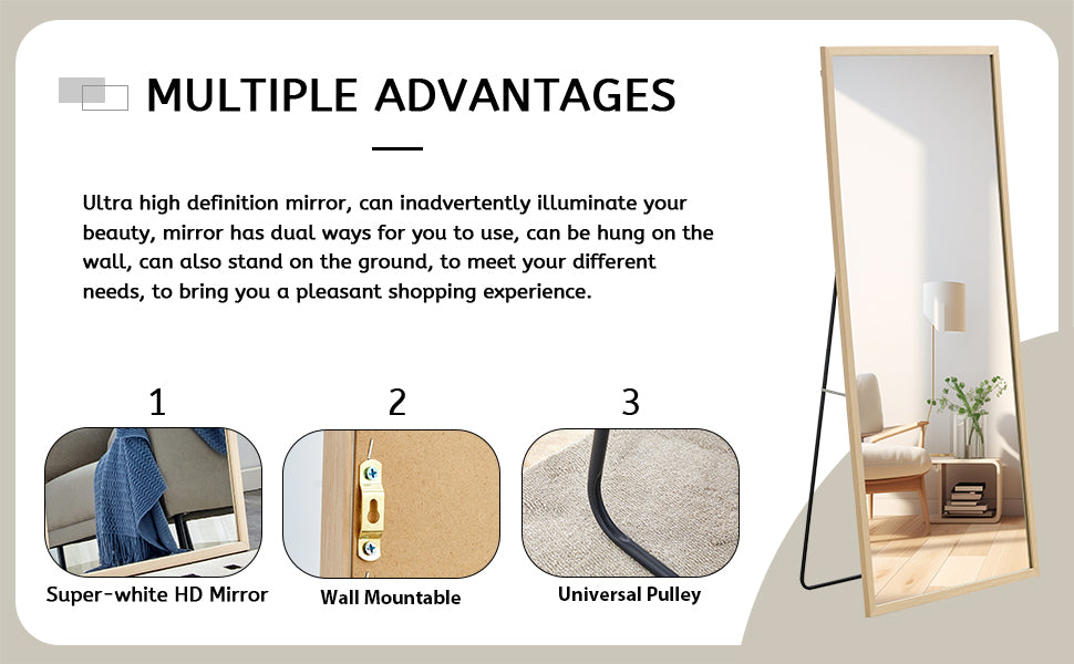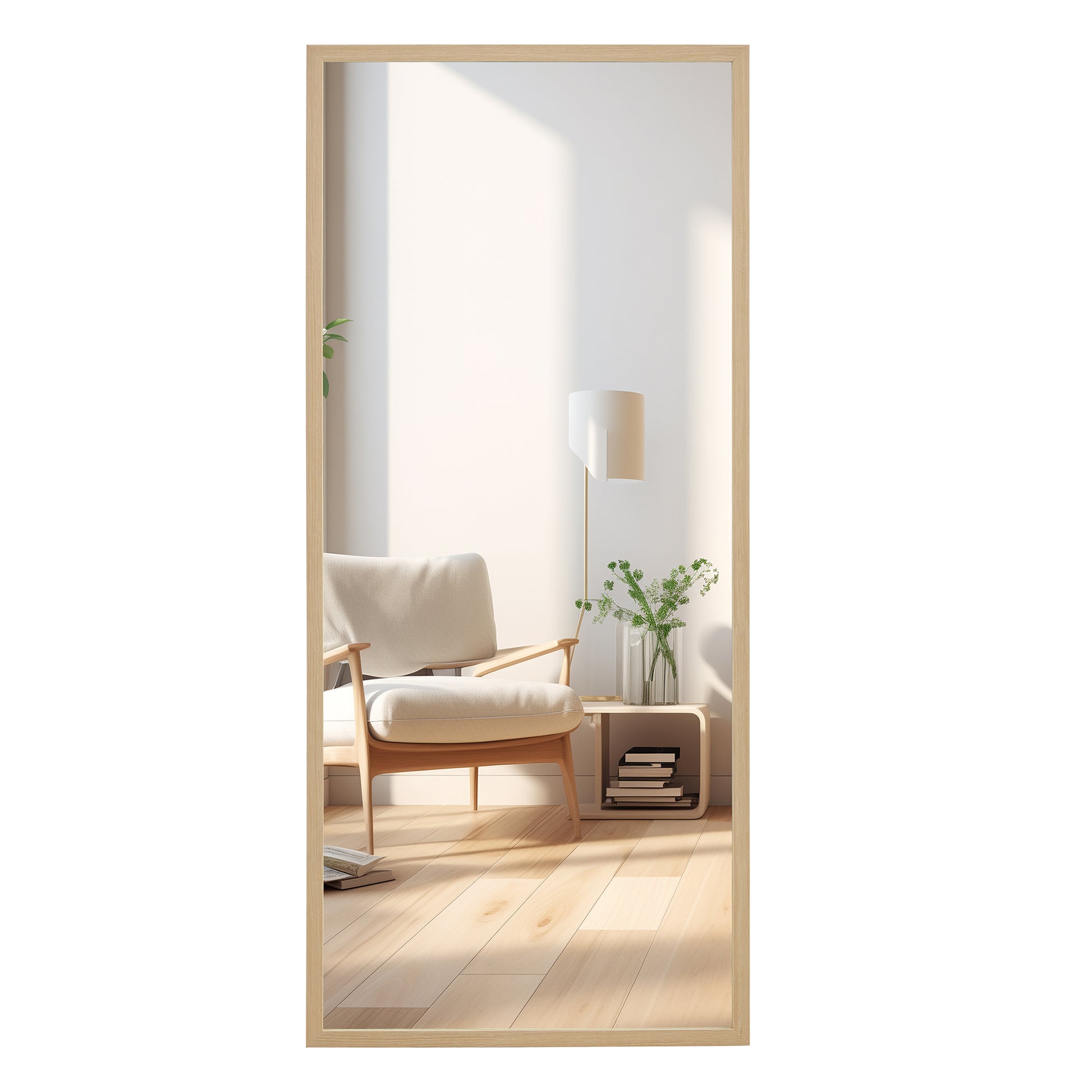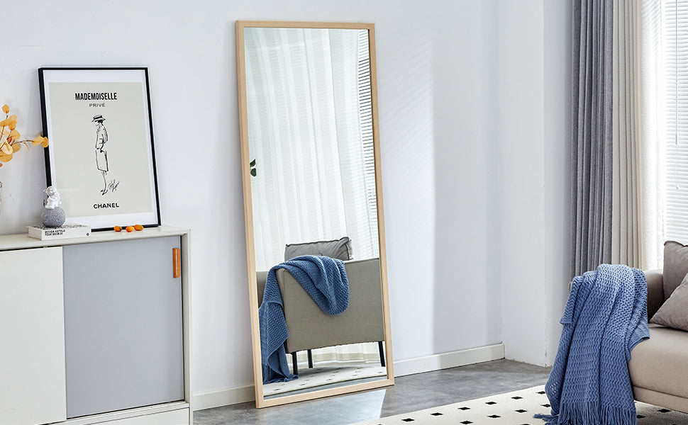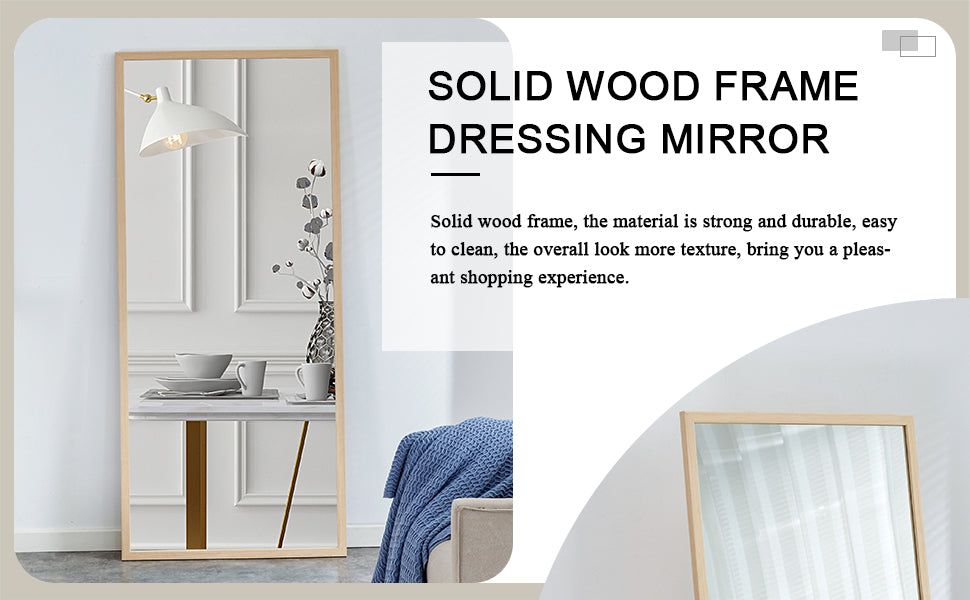 Fourth Generation Solid Wood Frame Full Length Mirror, Dressing Mirror, Bedroom Porch, Decorative Mirror, Clothing Store, Floor Standing Large Mirror, Wall Mounted. 71 "* 31.5" Transparent Glass