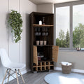 Fraktal Corner Bar Cabinet, Ten Built In Wine Rack, Two Shelves, Double Door Dark Oak Pine Dark Brown Dining Room Modern Particle Board