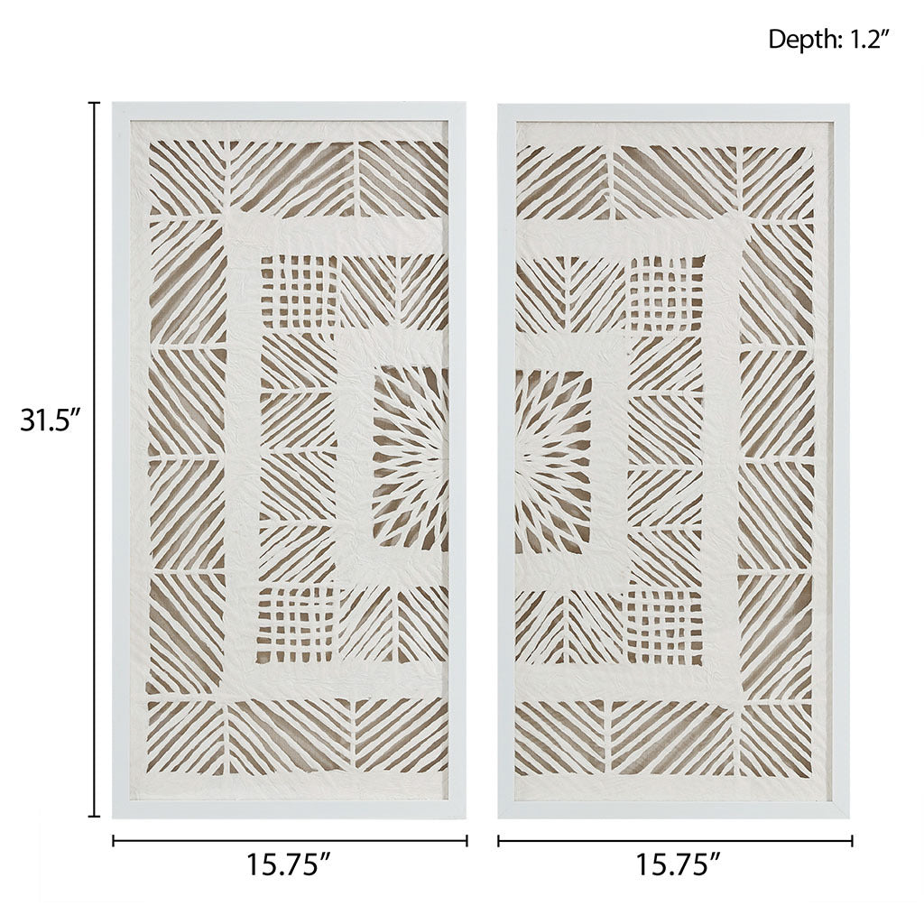 Framed Geometric Rice Paper Panel 2 Piece Shadowbox Wall Decor Set Off White Mdf