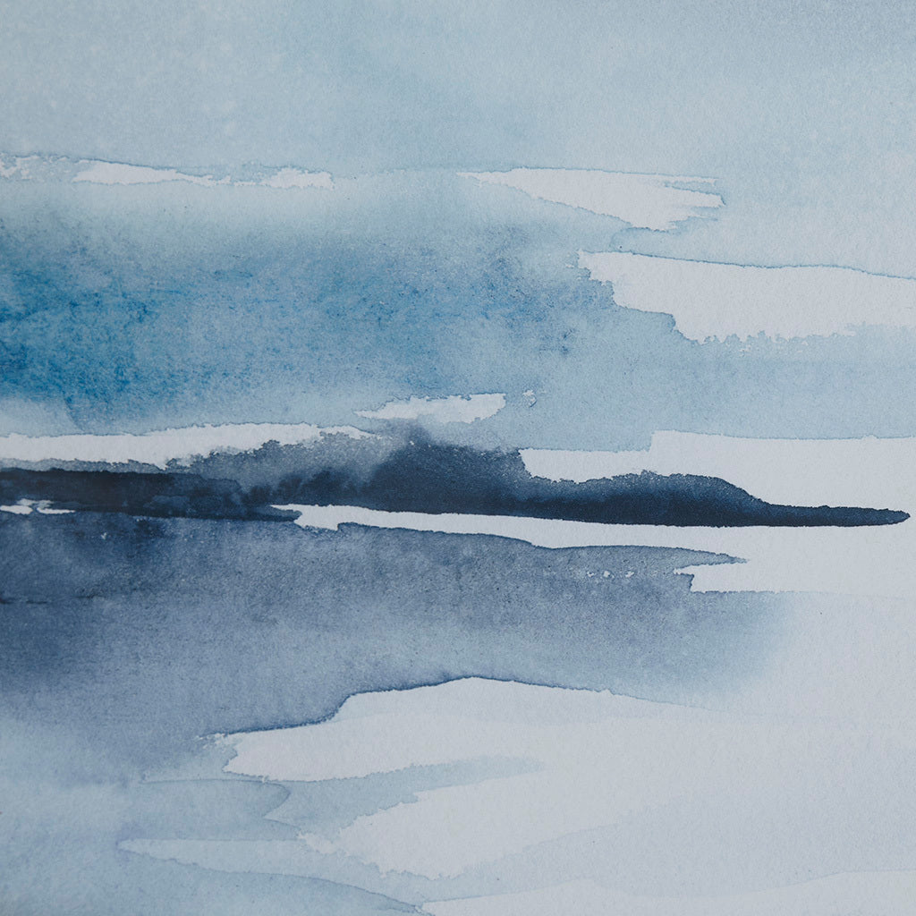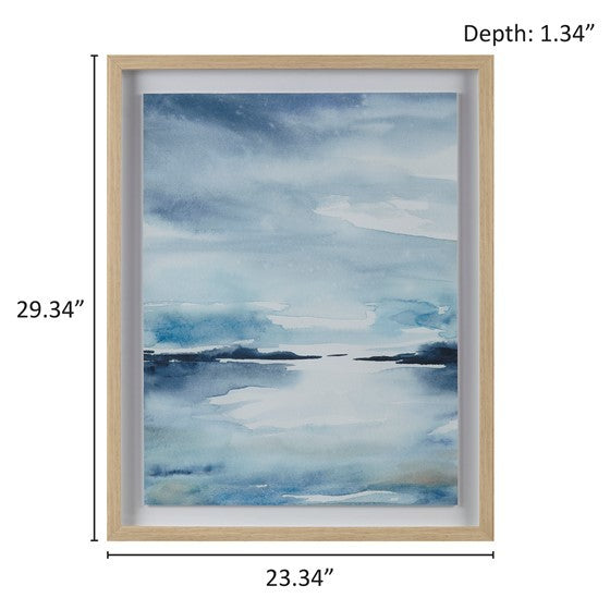 Framed Glass And Single Matted Abstract Landscape Coastal Wall Art Blue Polyester