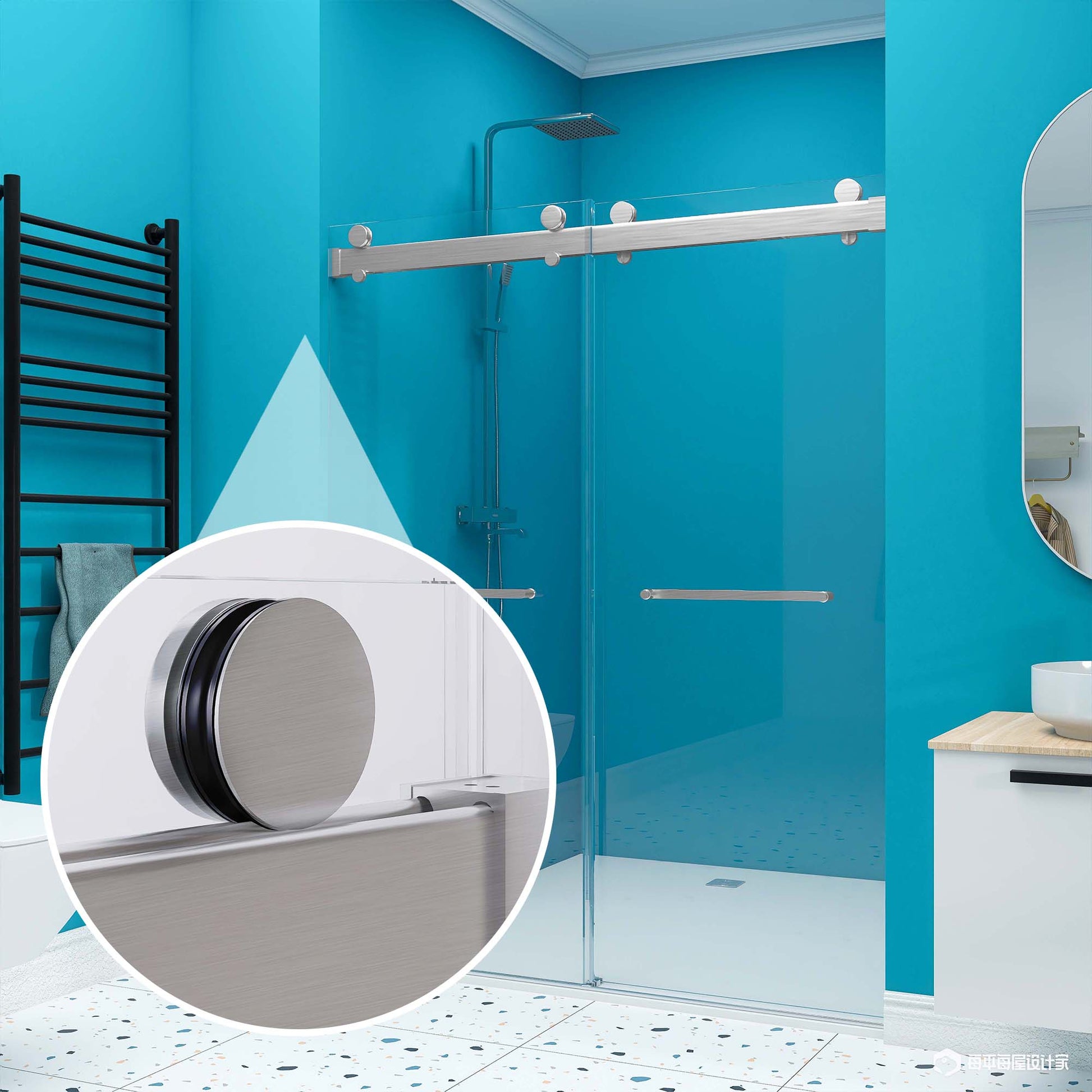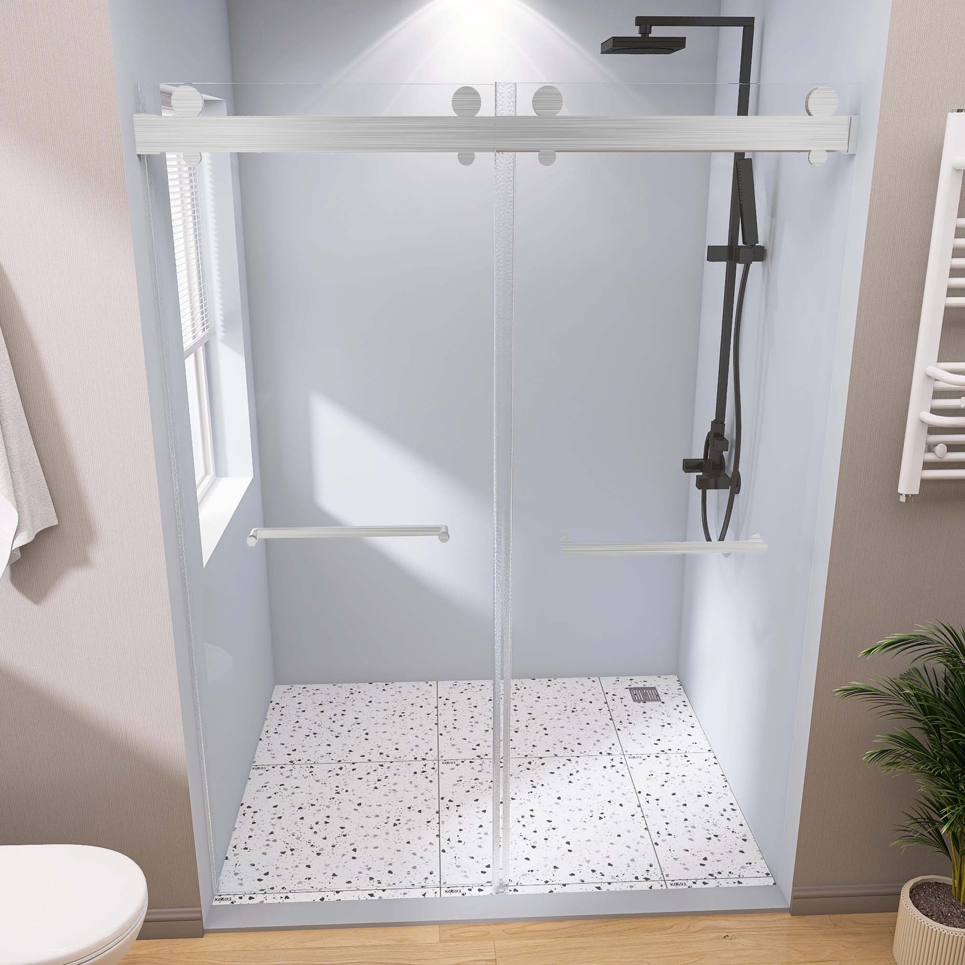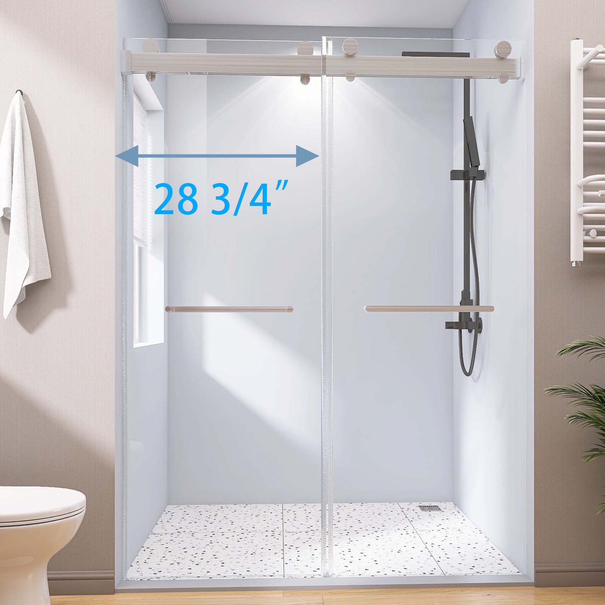 Frameless Double Sliding Shower, 57" 60" Width, 79" Height, 3 8" 10 Mm Clear Tempered Glass,Designed For Smooth Door With Clear Tempered Glass And Stainless Steel Hardware Brushed Nickel Brushed Nickel Glass