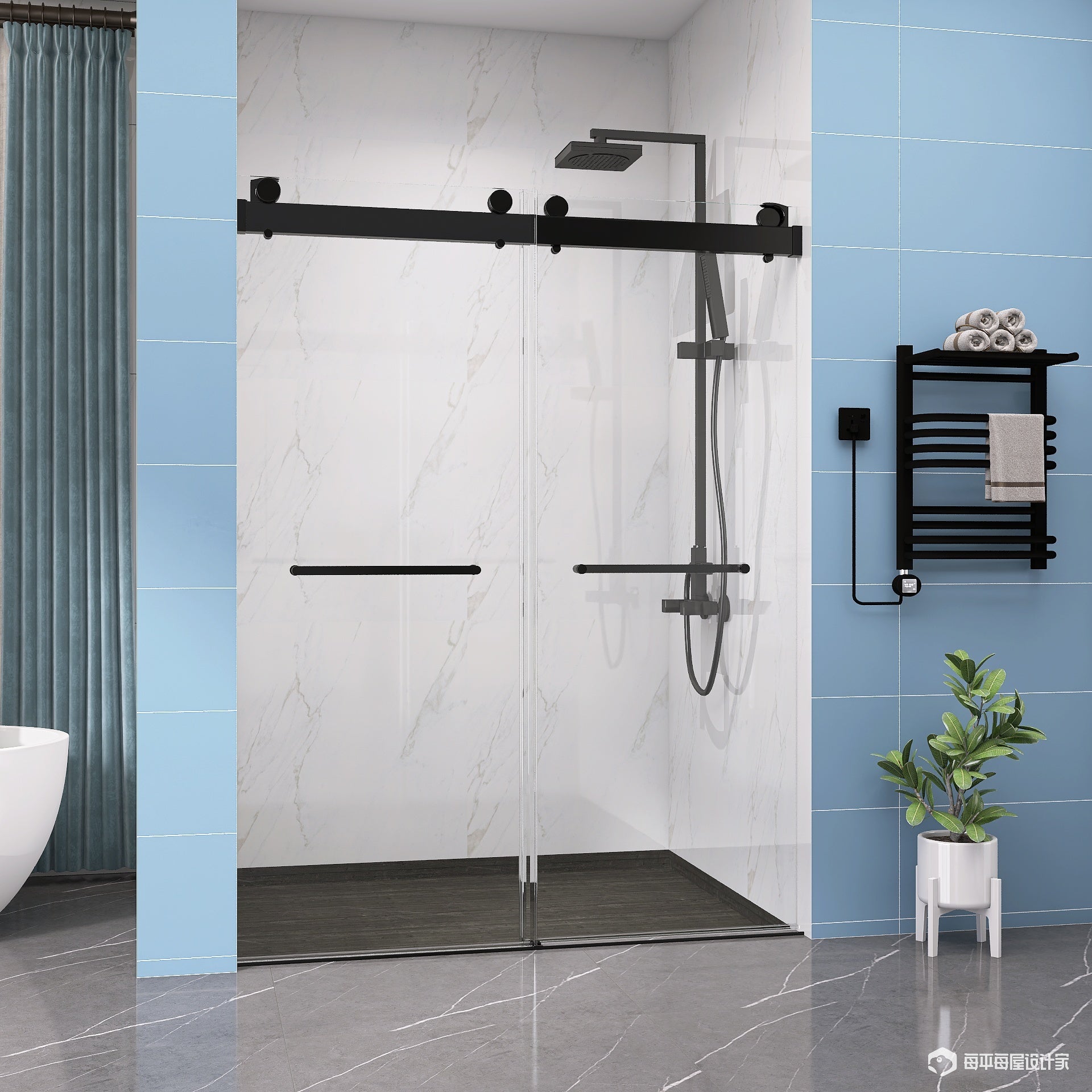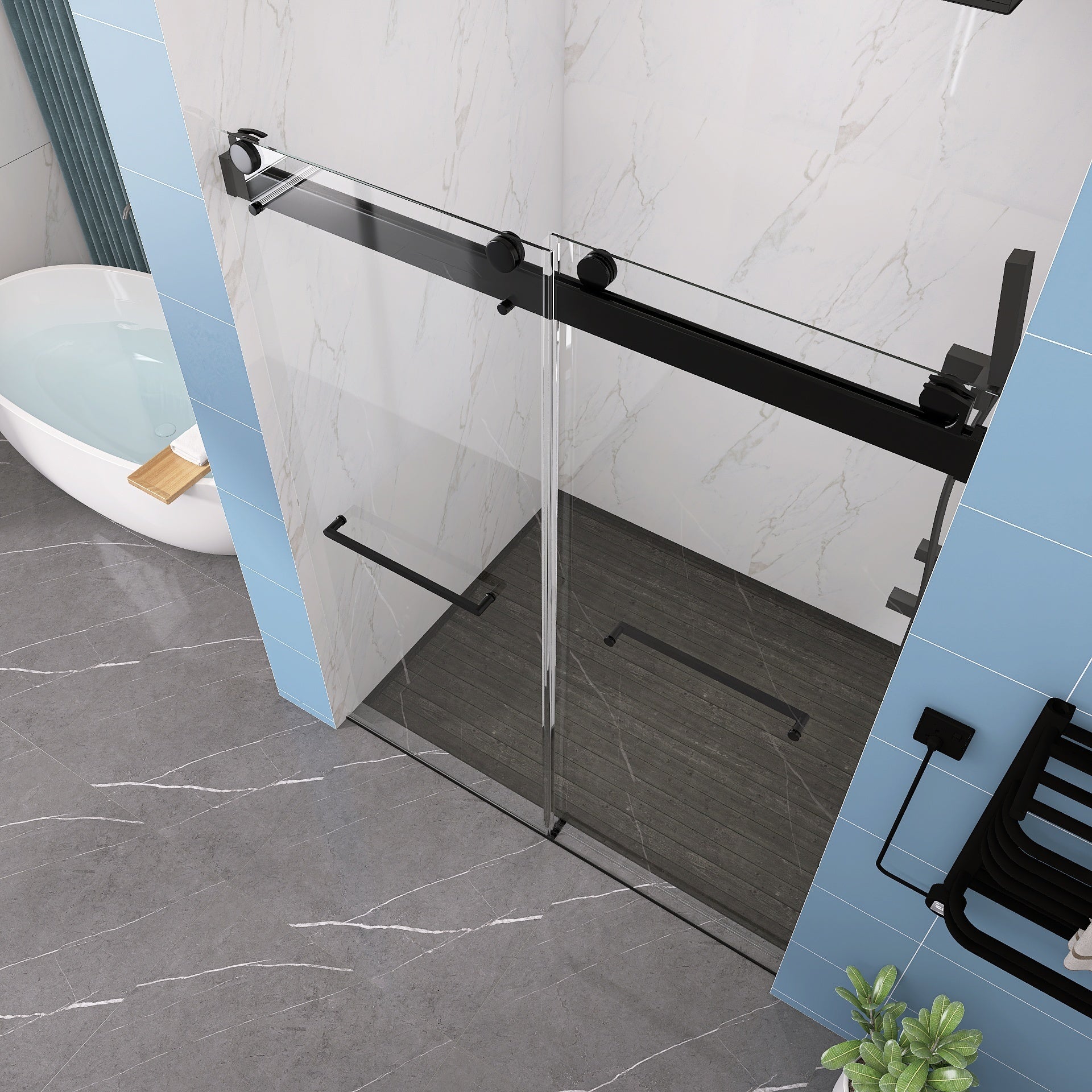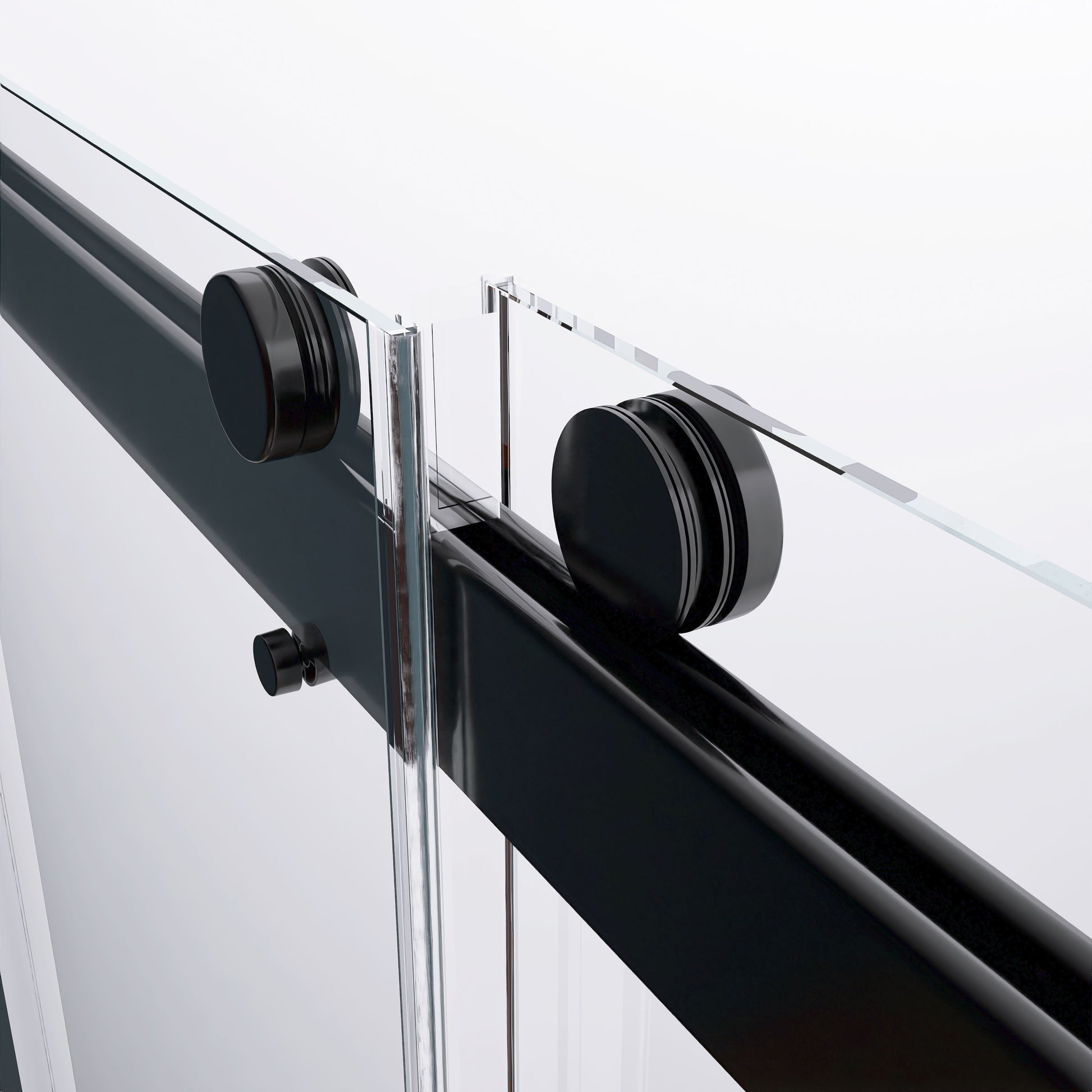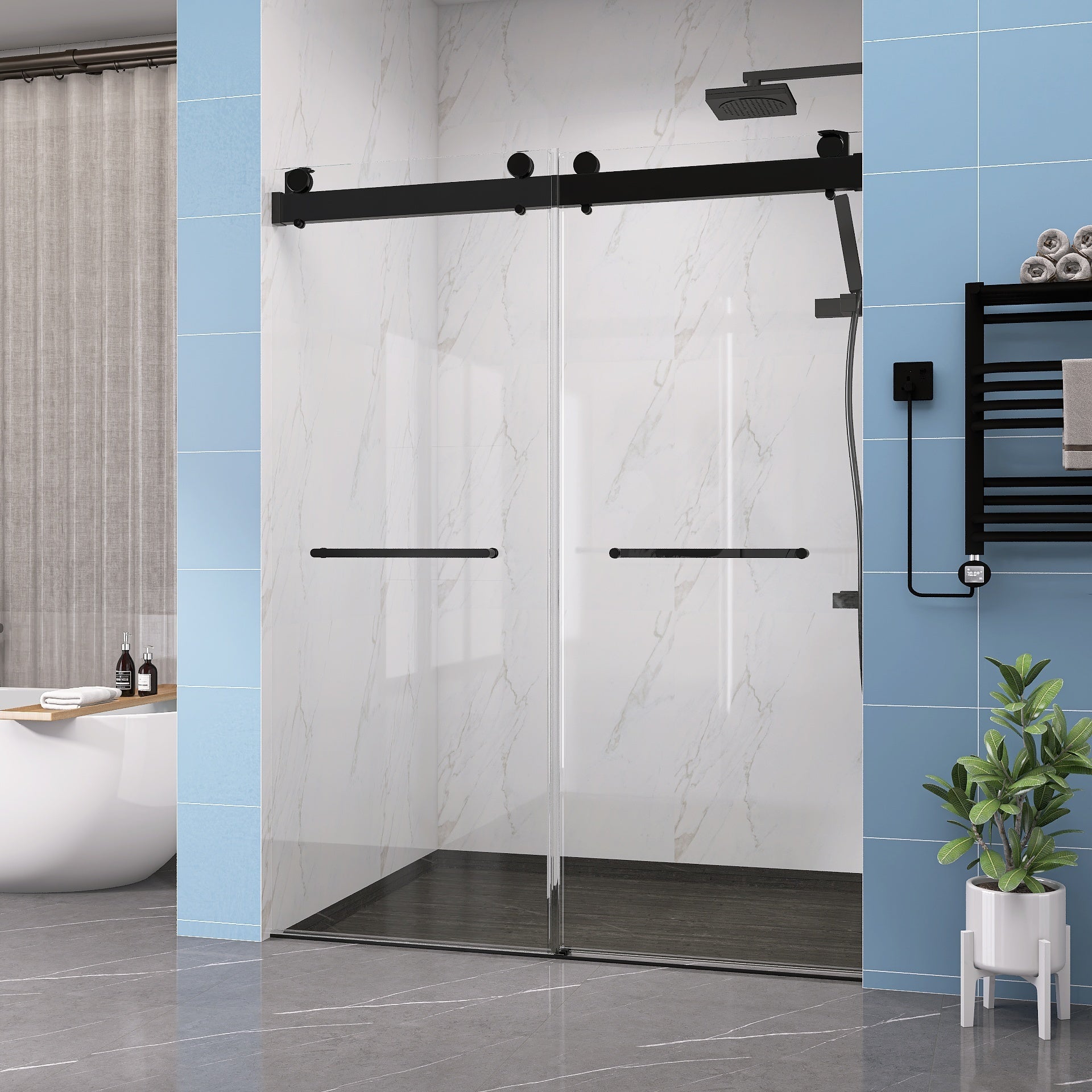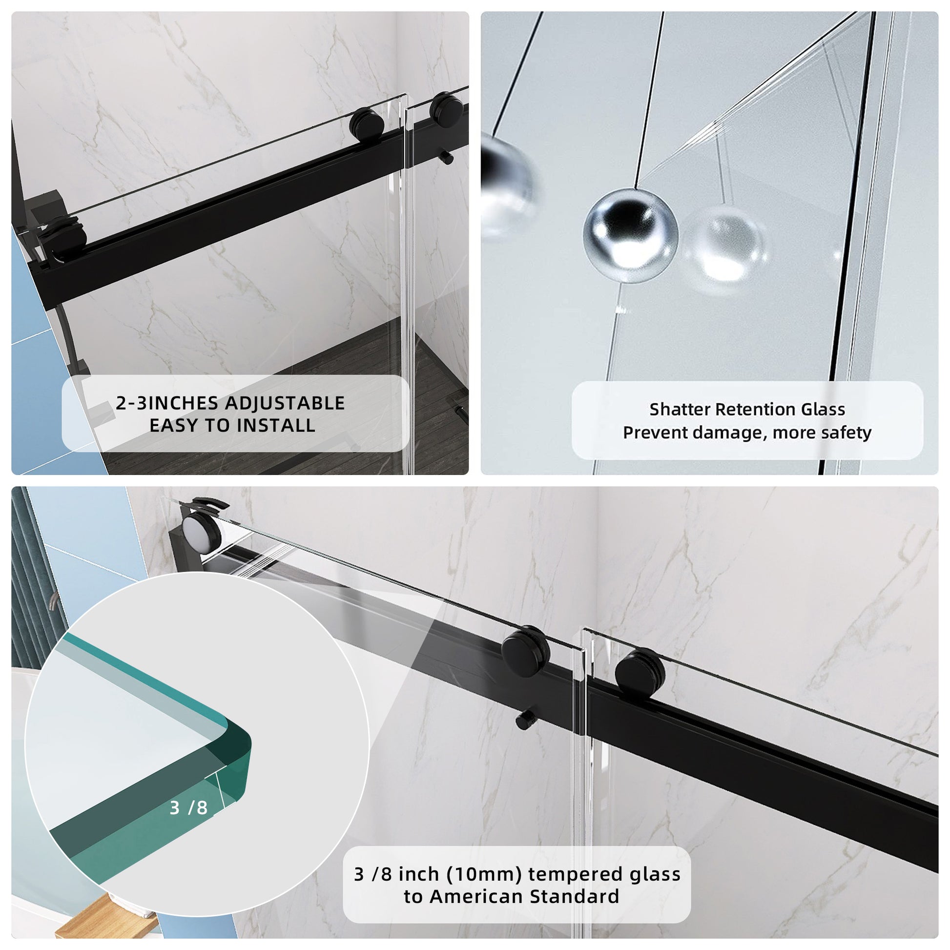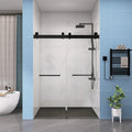 Frameless Double Sliding Shower, 57" 60" Width, 79" Height, 3 8" 10 Mm Clear Tempered Glass,Designed For Smooth Door Closing With Upgraded Crashproof System Technology Matte Black Finish Matte Black Glass