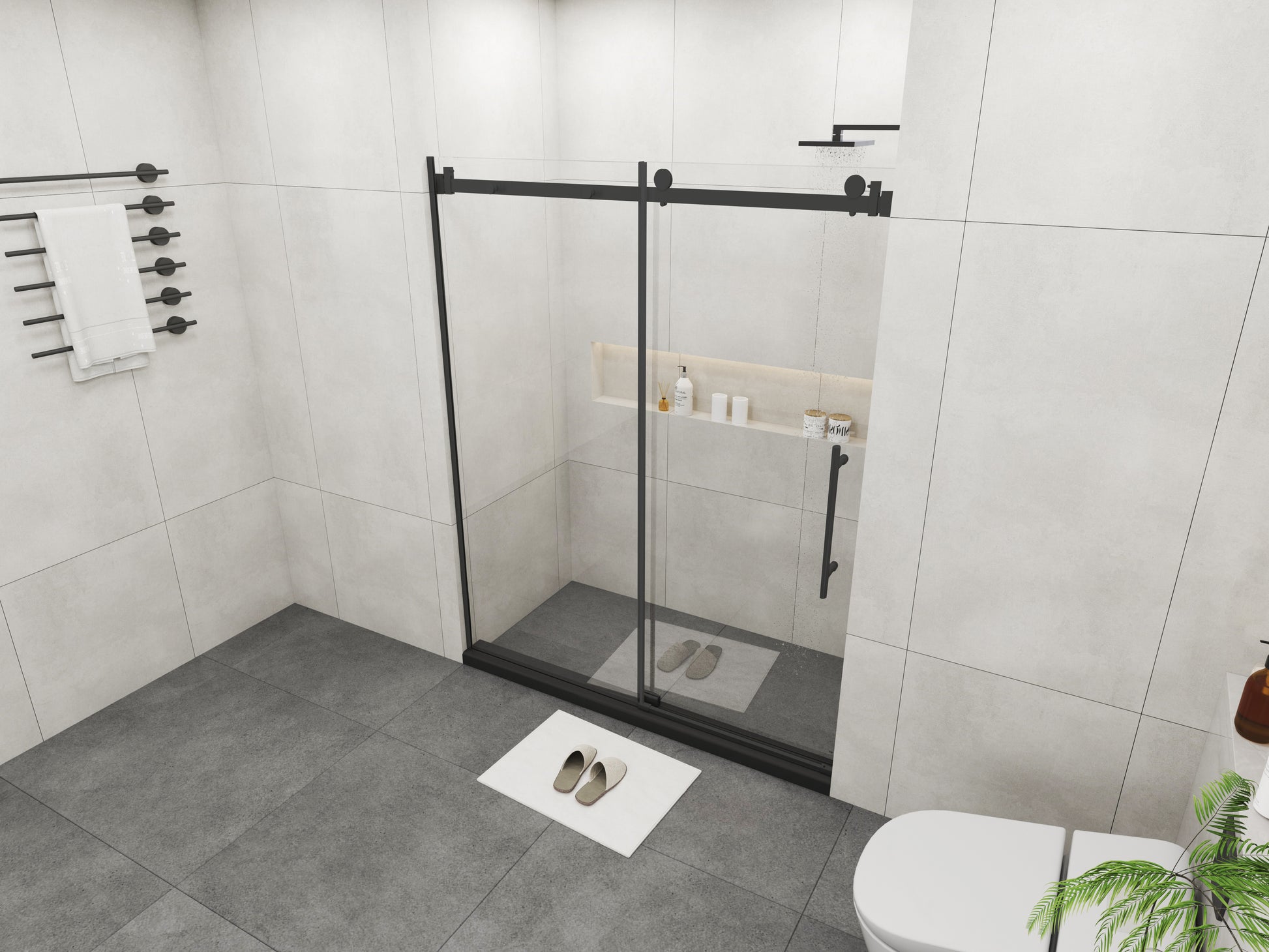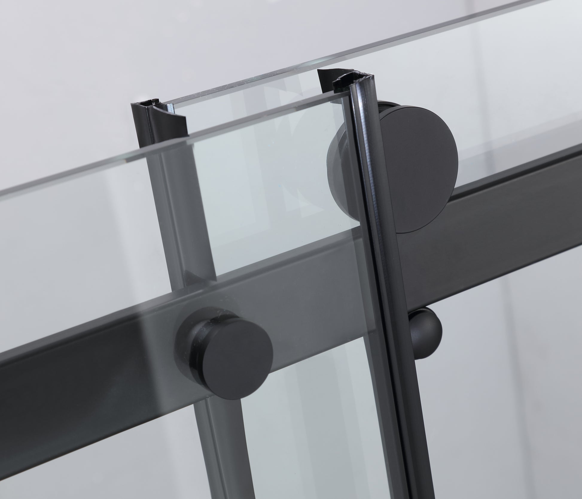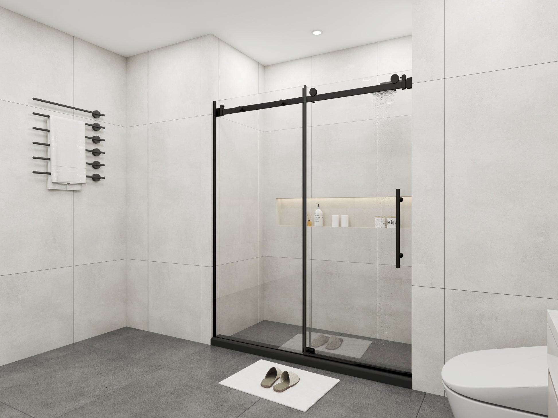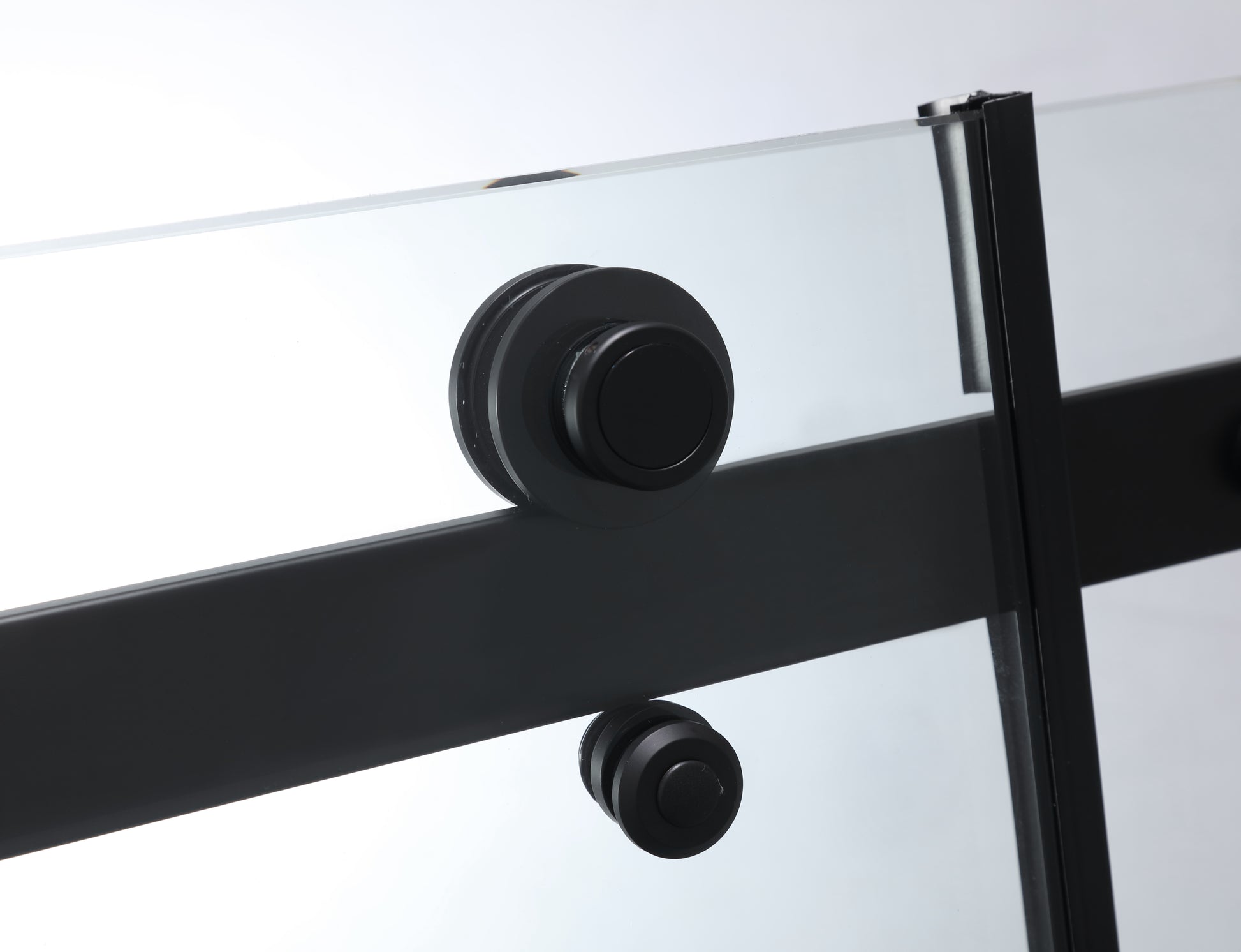 Frameless Sliding Glass Shower Doors 72" Width X 76"Height With 3 8" 10Mm Clear Tempered Glass, Matt Black Finish Matt Black Bathroom American Design Stainless Steel Tempered Glass