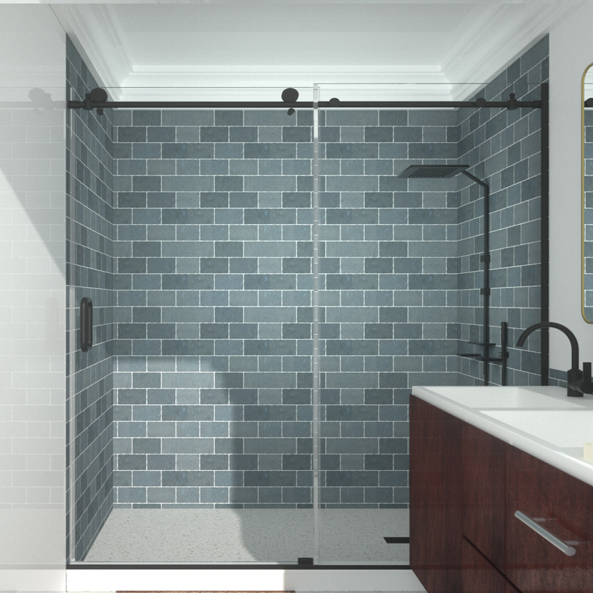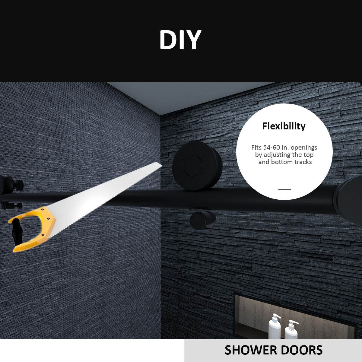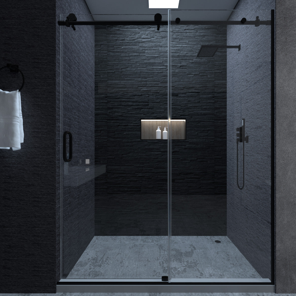 Frameless Sliding Shower Door 58 60 In. W X 76 In. H, Bathroom Sliding Door With 5 16" Clear Tempered Glass, Matte Black Finish, Designed For Smooth Door Closing Matte Black Stainless Steel