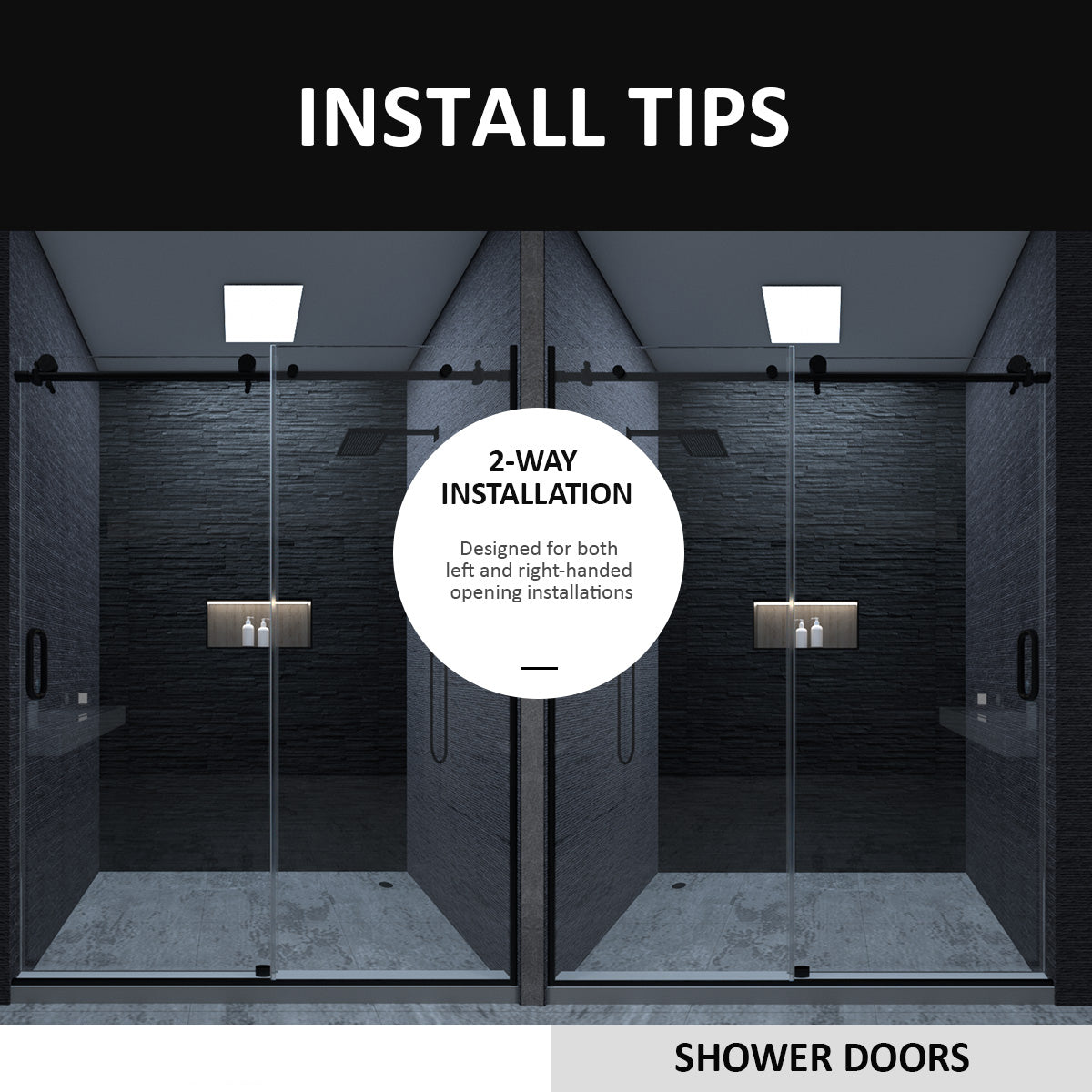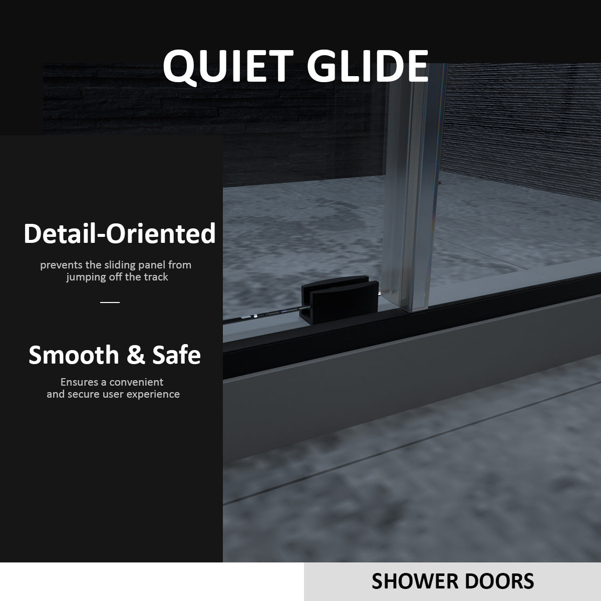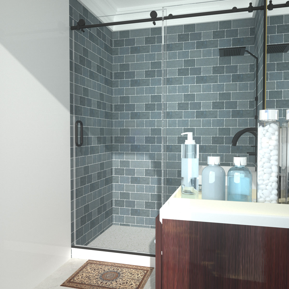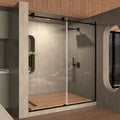 Frameless Sliding Shower Door 58 60 In. W X 76 In. H, Bathroom Sliding Door With 5 16" Clear Tempered Glass, Matte Black Finish, Designed For Smooth Door Closing Matte Black Stainless Steel