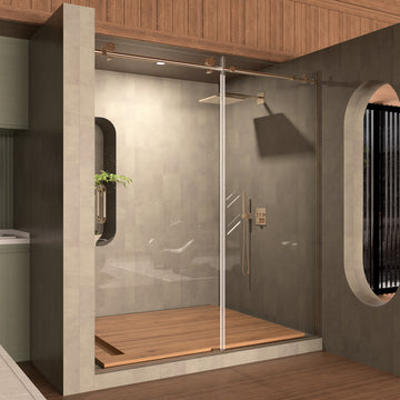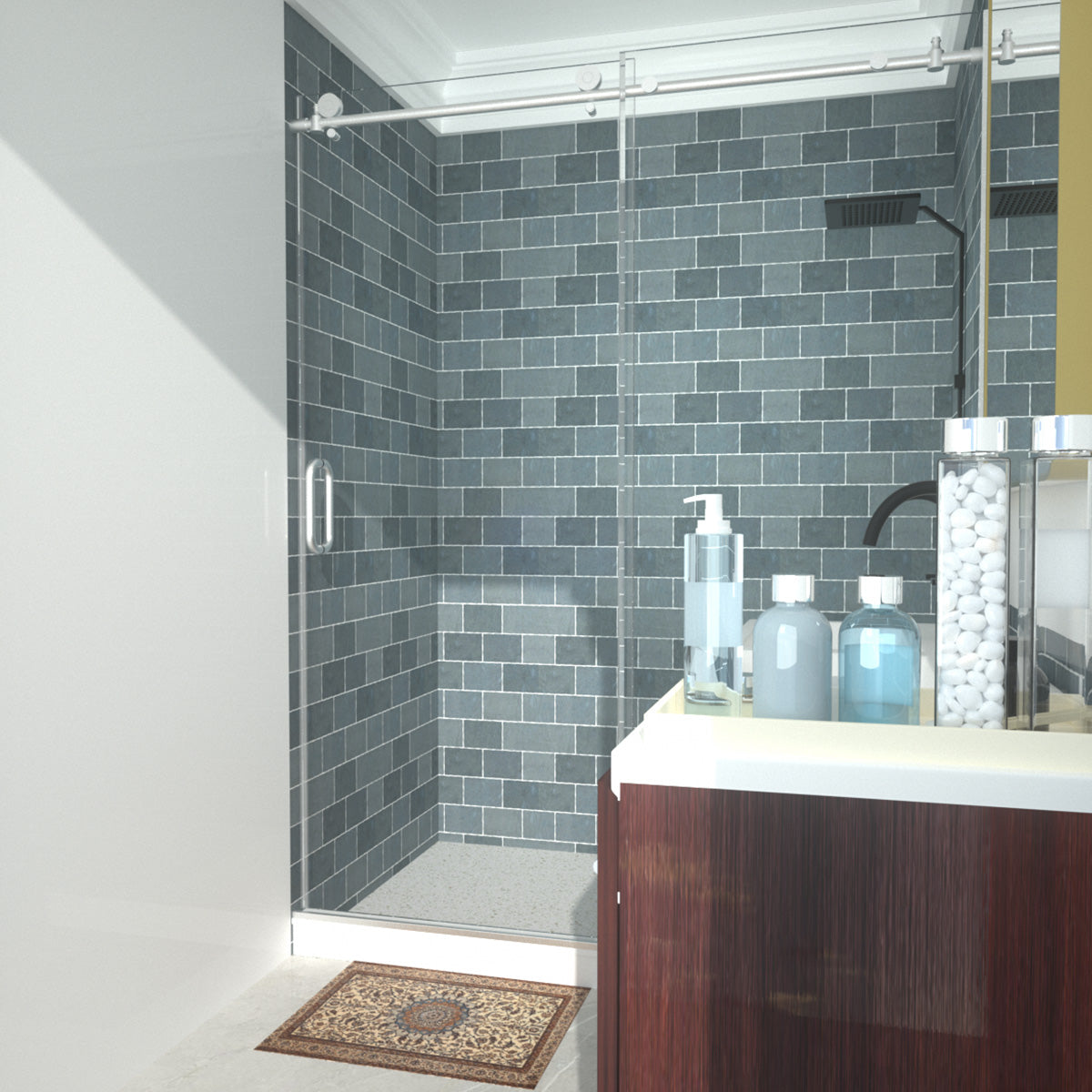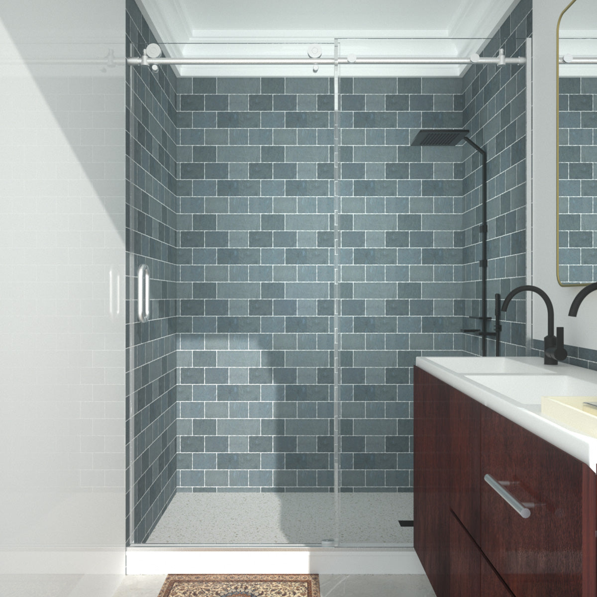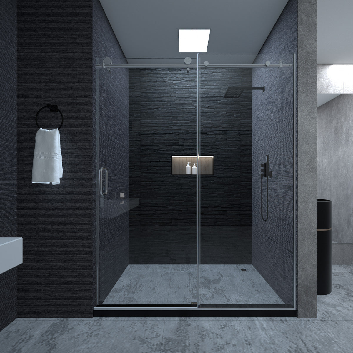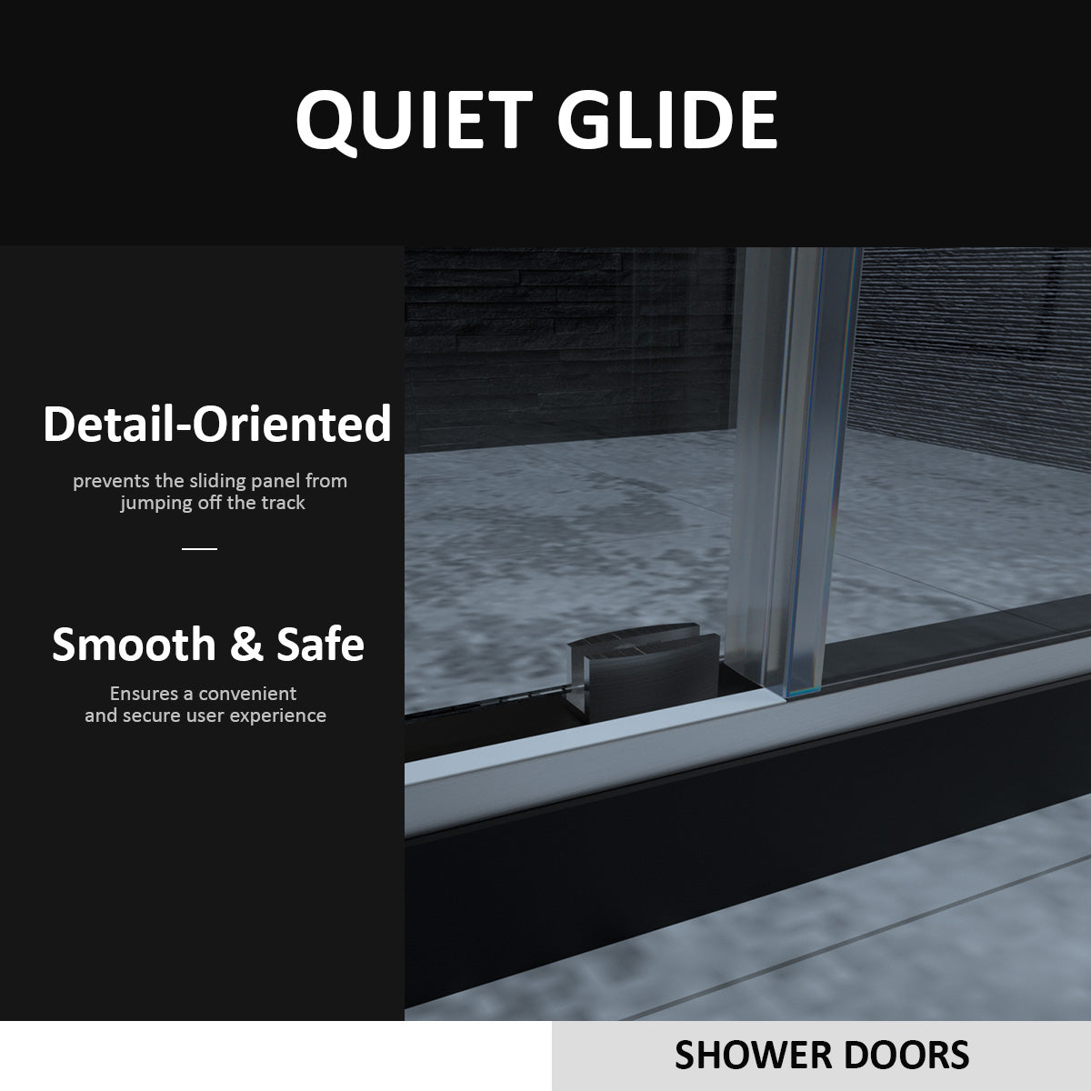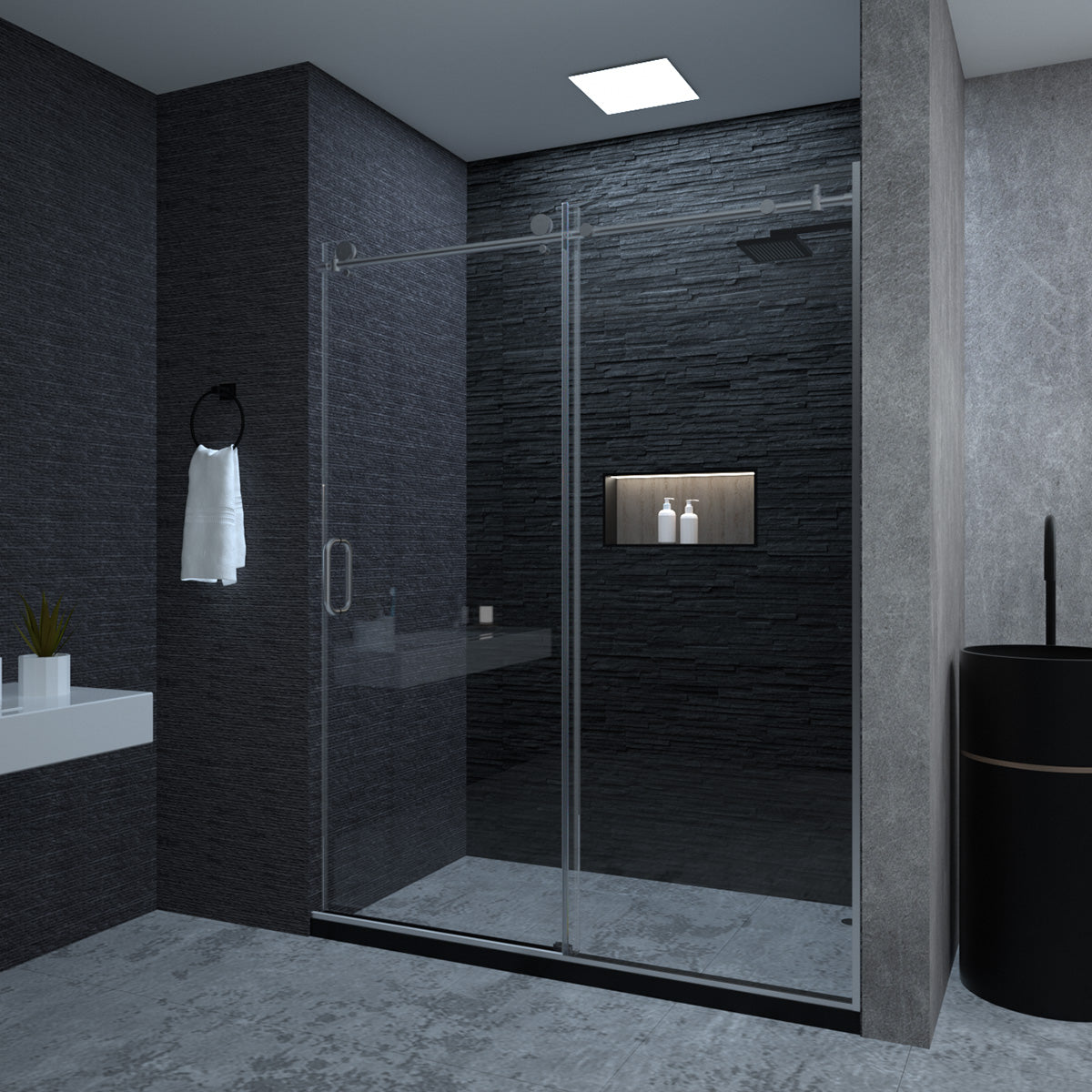 Frameless Sliding Shower Door 58 60 In. W X 76 In. H, Bathroom Sliding Door With 5 16" Clear Tempered Glass, Brushed Nickel Finish, Designed For Smooth Door Closing Brushed Nickel Stainless Steel