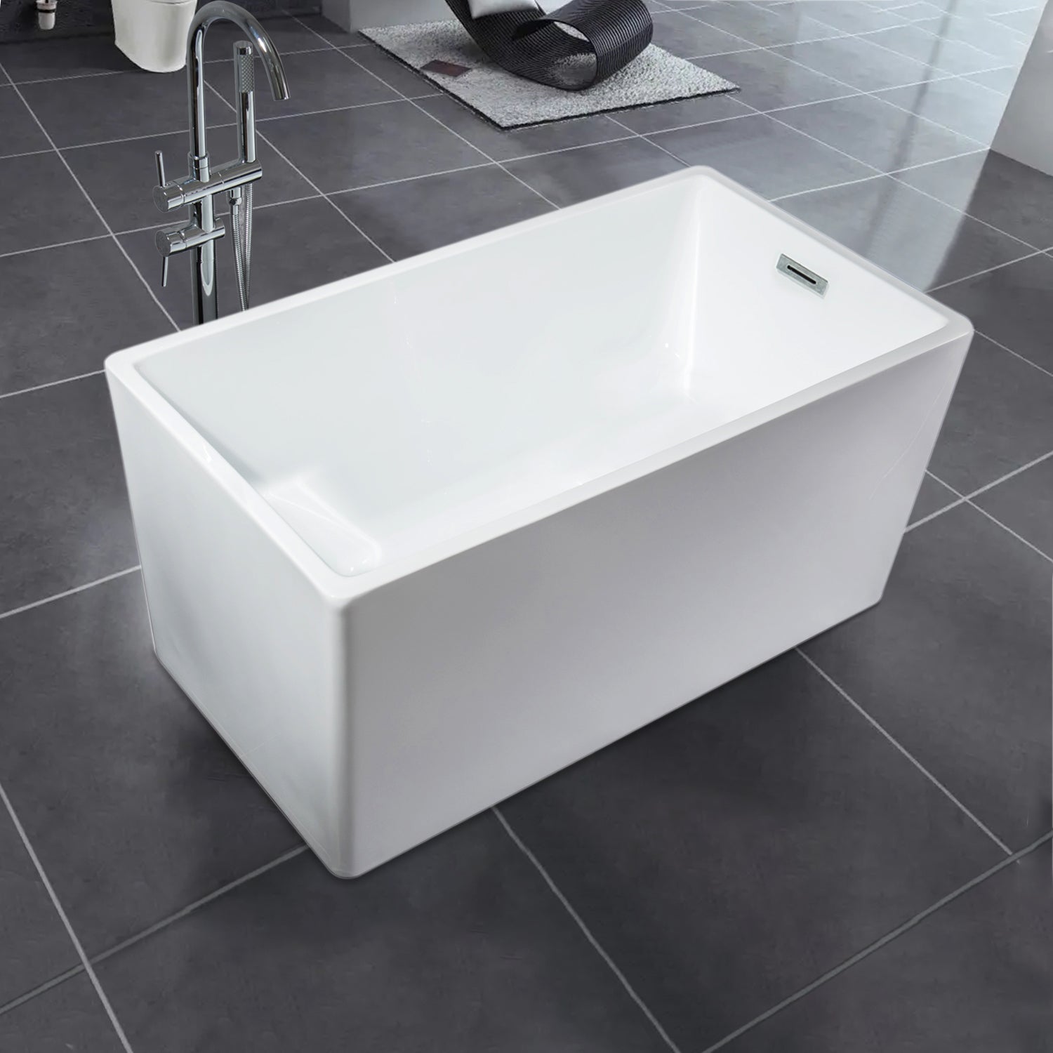 Freestanding Acrylic Flatbottom Soaking Tub Bathtub In White White Ceramic