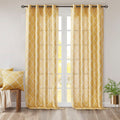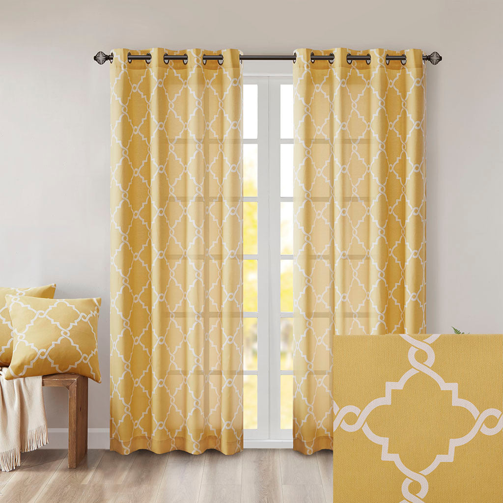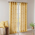 Fretwork Print Grommet Top Window Curtain Panel Only 1 Pc Panel Yellow White Polyester