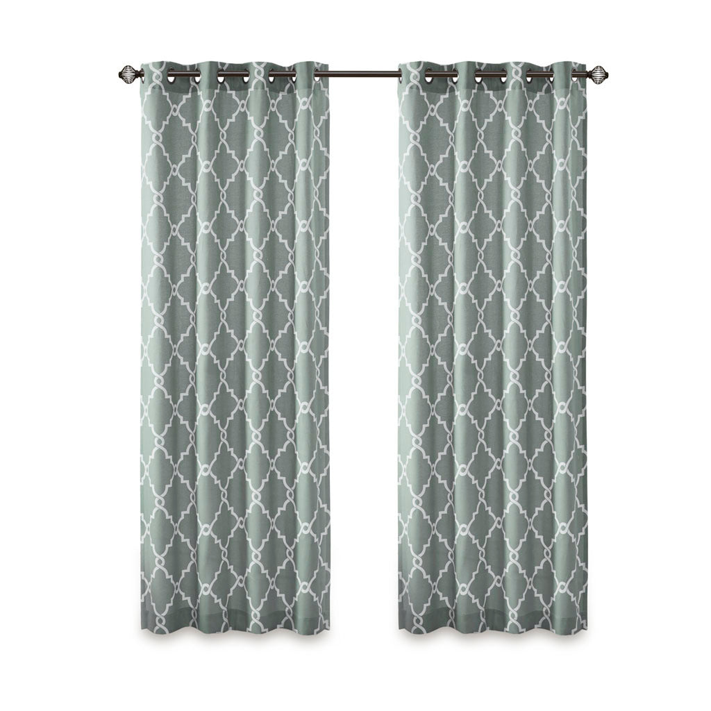 Fretwork Print Grommet Top Window Curtain Panel Only 1 Pc Panel Seafoam White Polyester