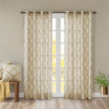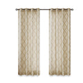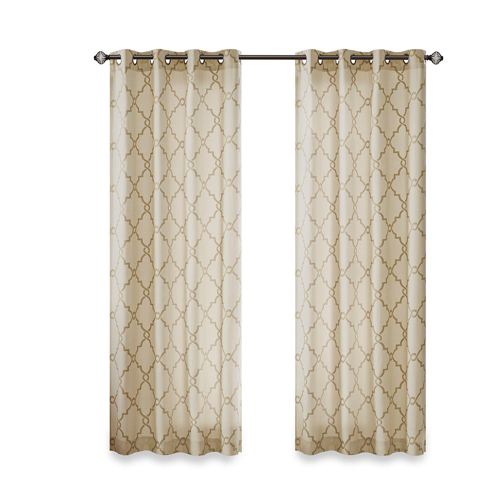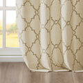 Fretwork Print Grommet Top Window Curtain Panel Only 1 Pc Panel Beige Gold Polyester