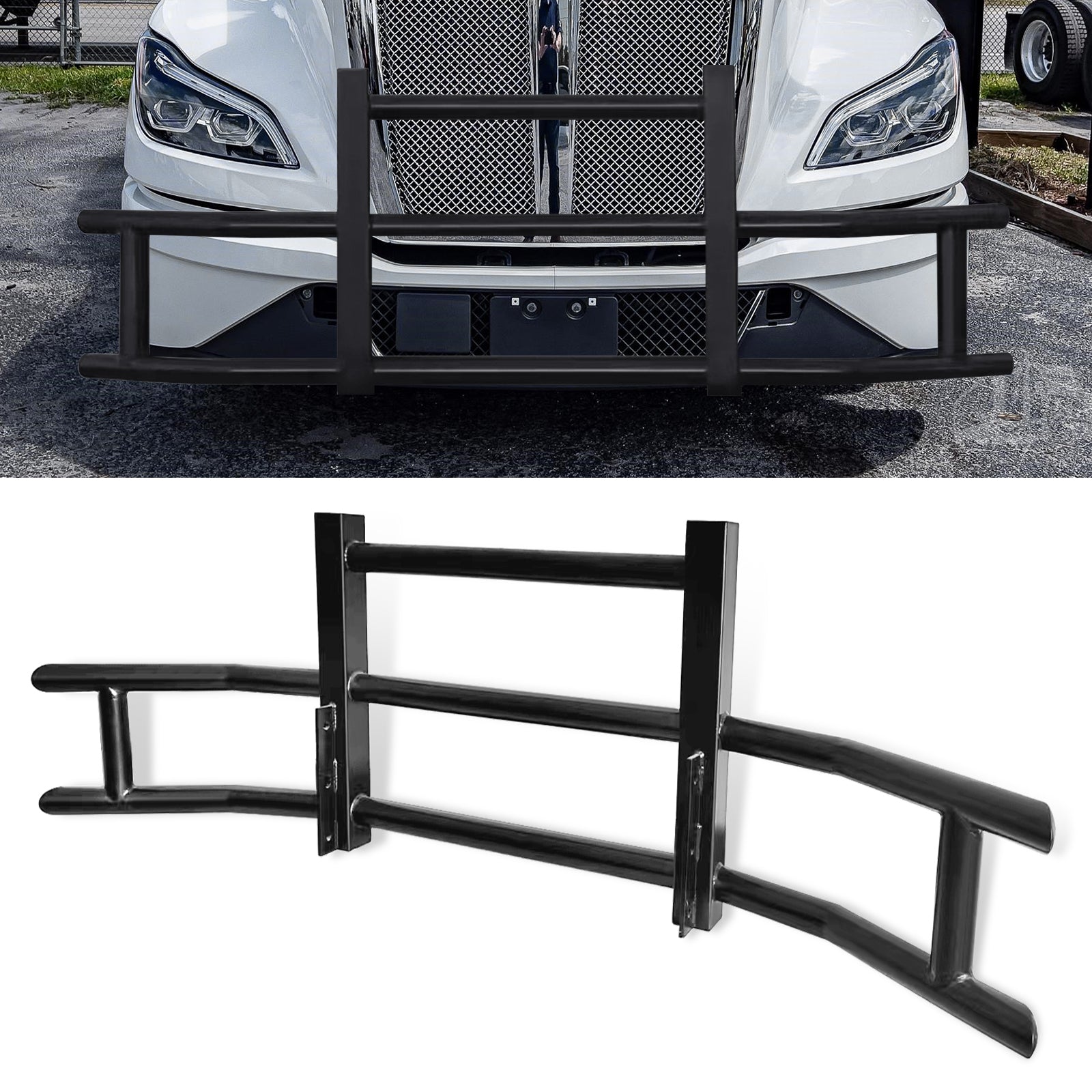 Front Bumper Deer Guard For Kenworth T680 2022 With Bracket Black Iron