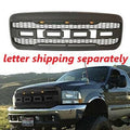 Front Grill For 1999 2000 2001 2002 2003 2004 Ford F250 F350 F450 Super Duty Raptor Style Grill With 3 Amber Led Lights & Letters Matte Black Matt Black Abs Abs