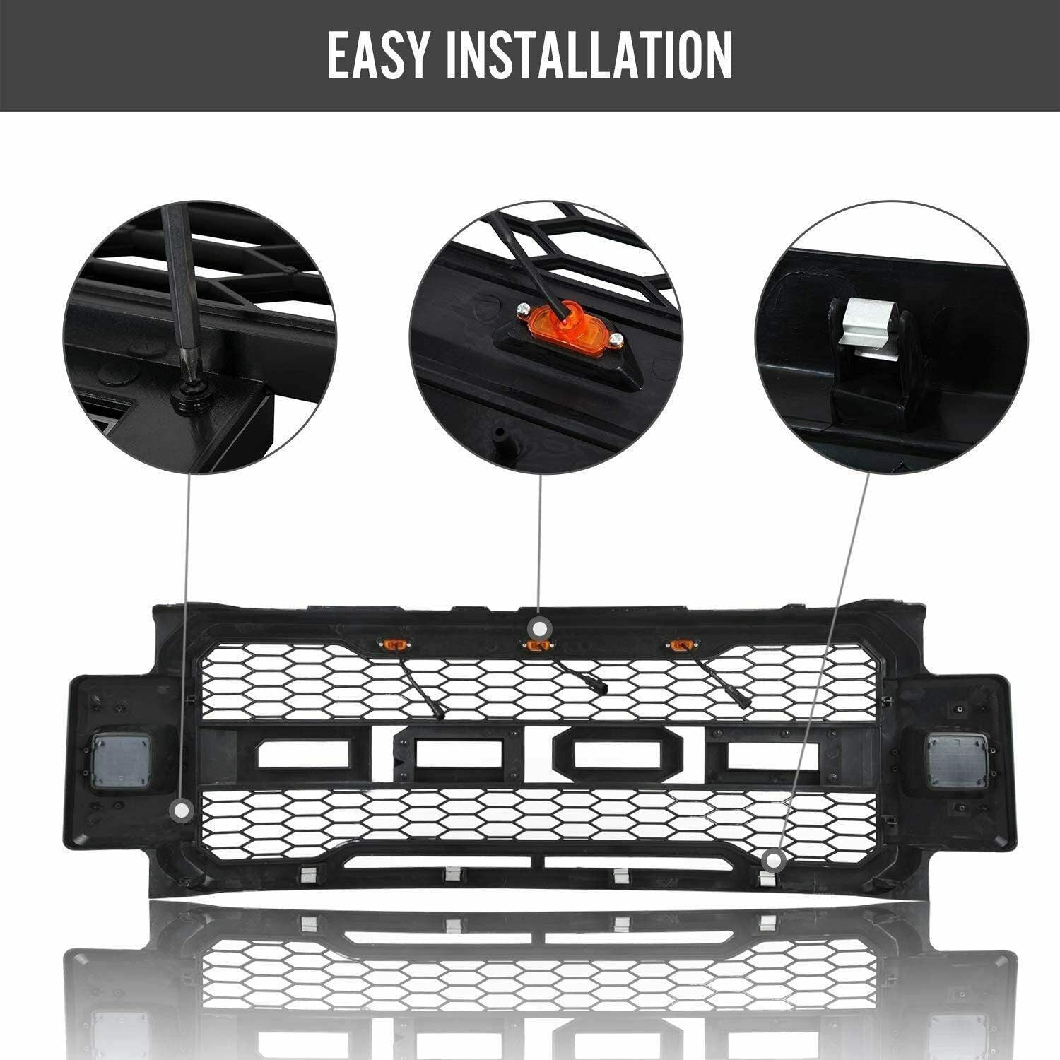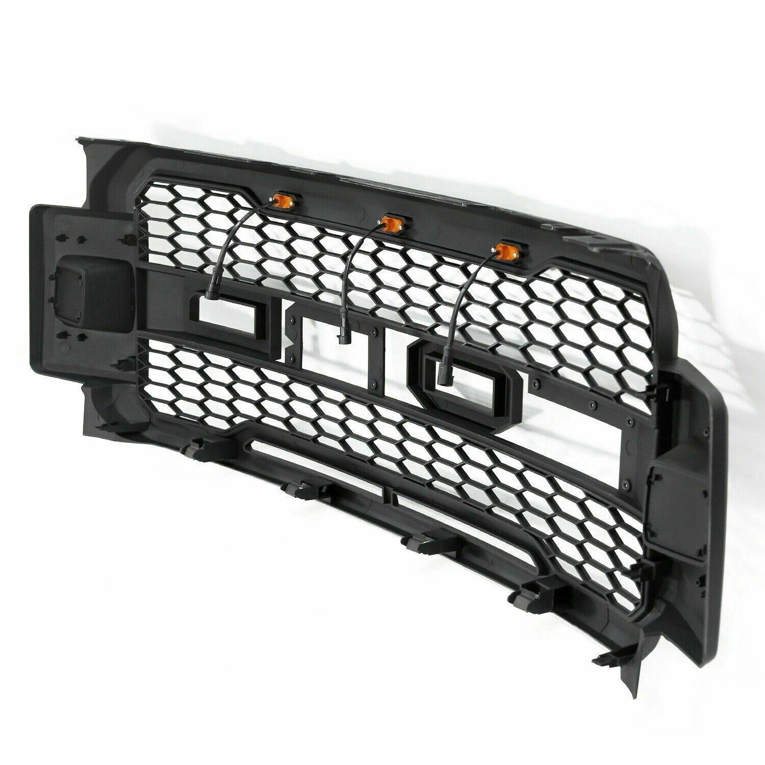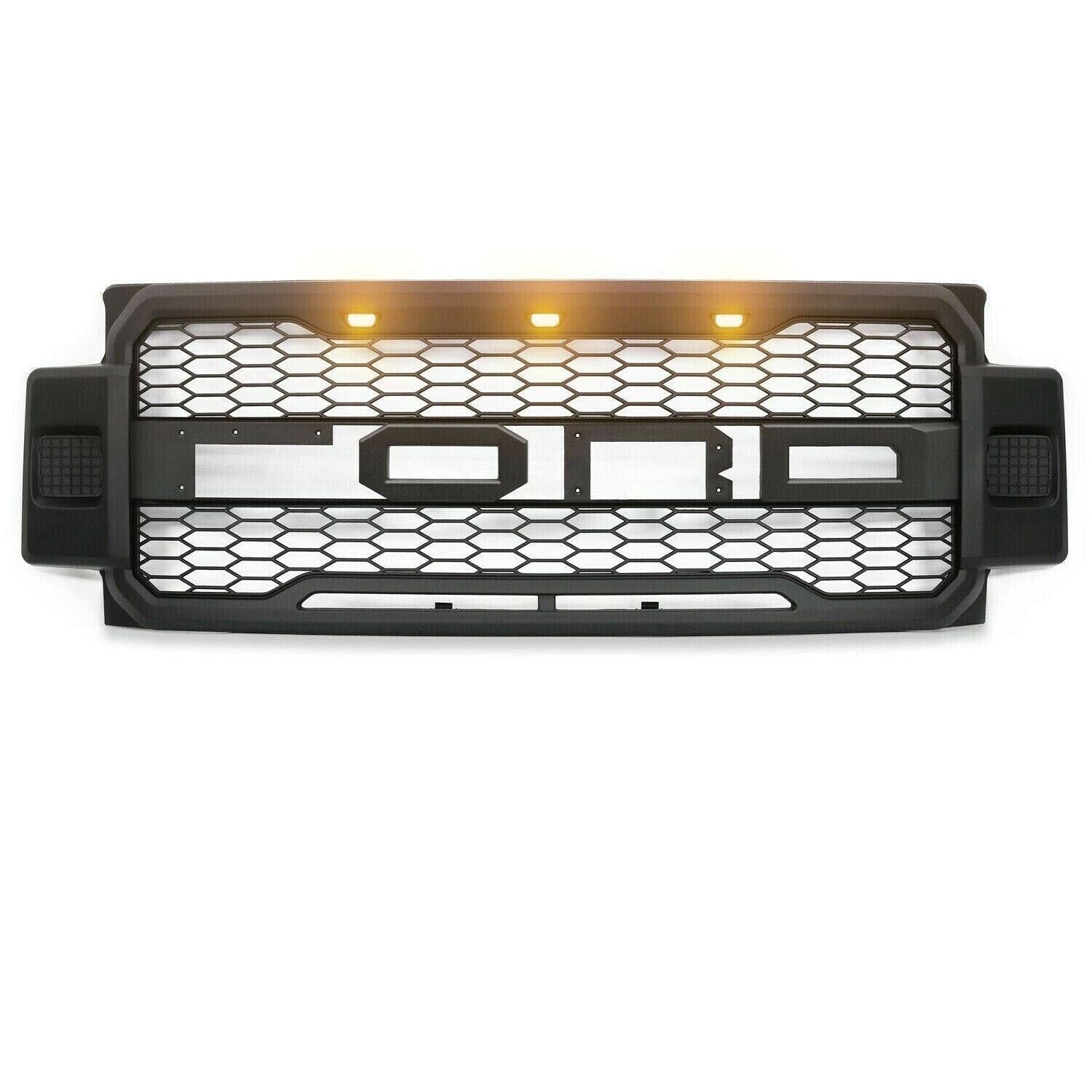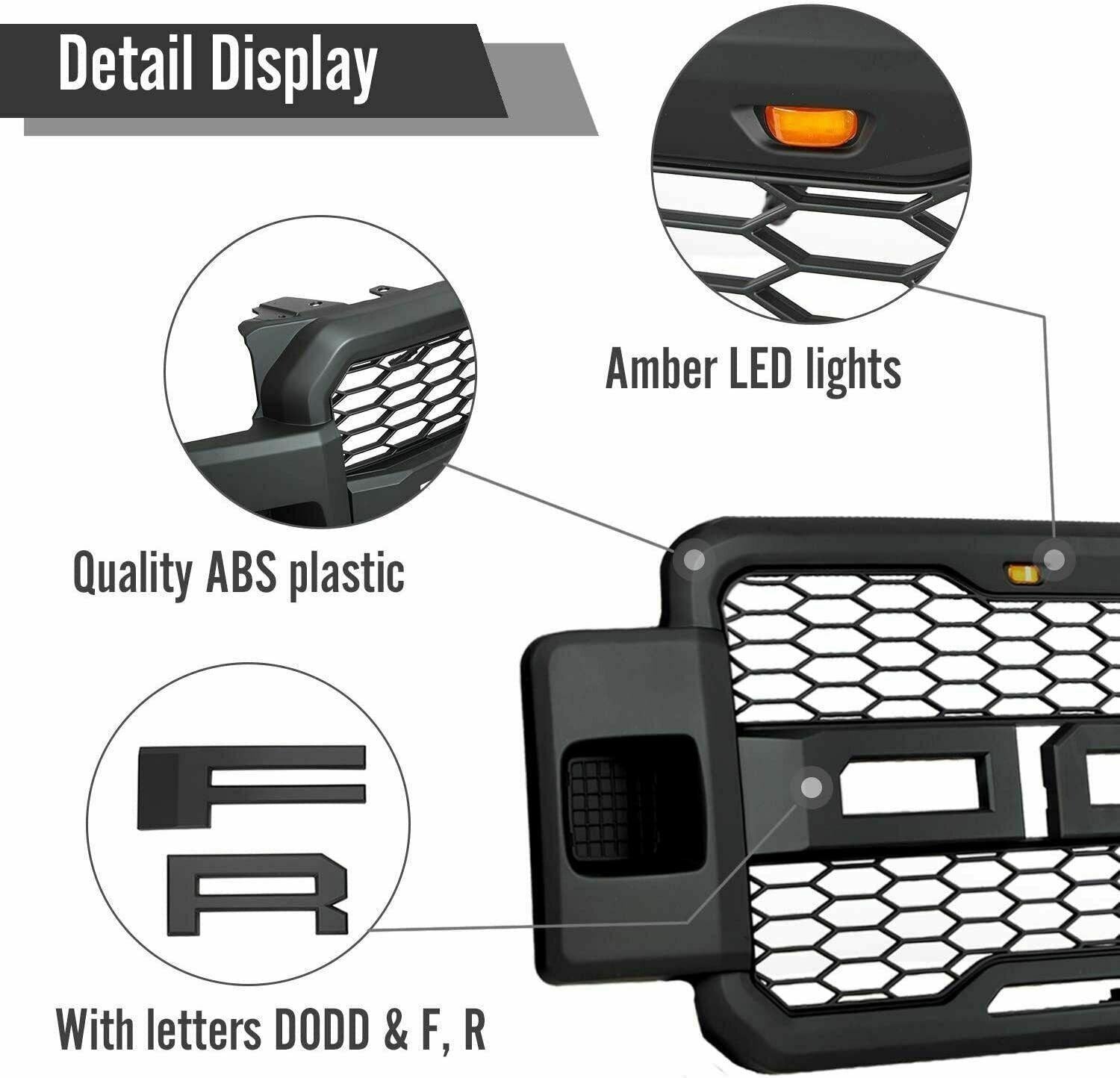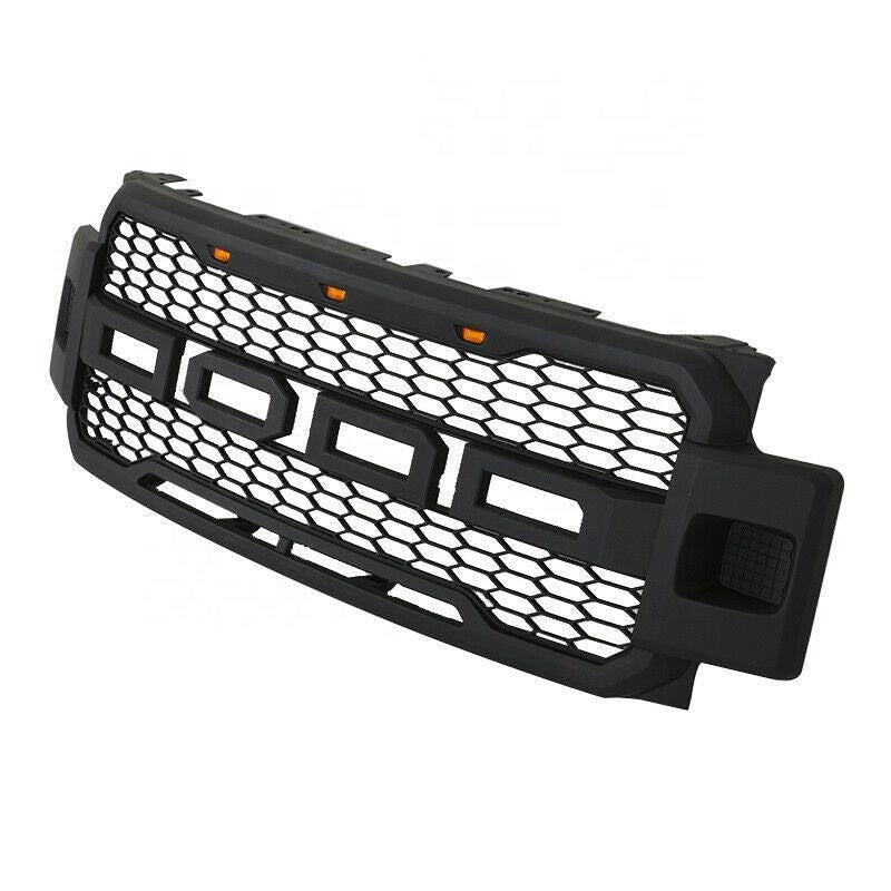 Front Grille For 2017 2018 2019 Ford F250 F350 Super Duty Raptor Grill W Led Lights & Letters Matte Black Matt Black Abs Abs