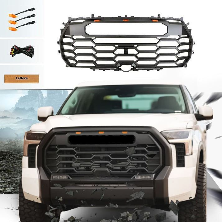 Front Grille For 2022 2023 2024 Tundra Trd Pro Grill With 3 Led Lights And Toyota Letters Matt Black Abs Abs