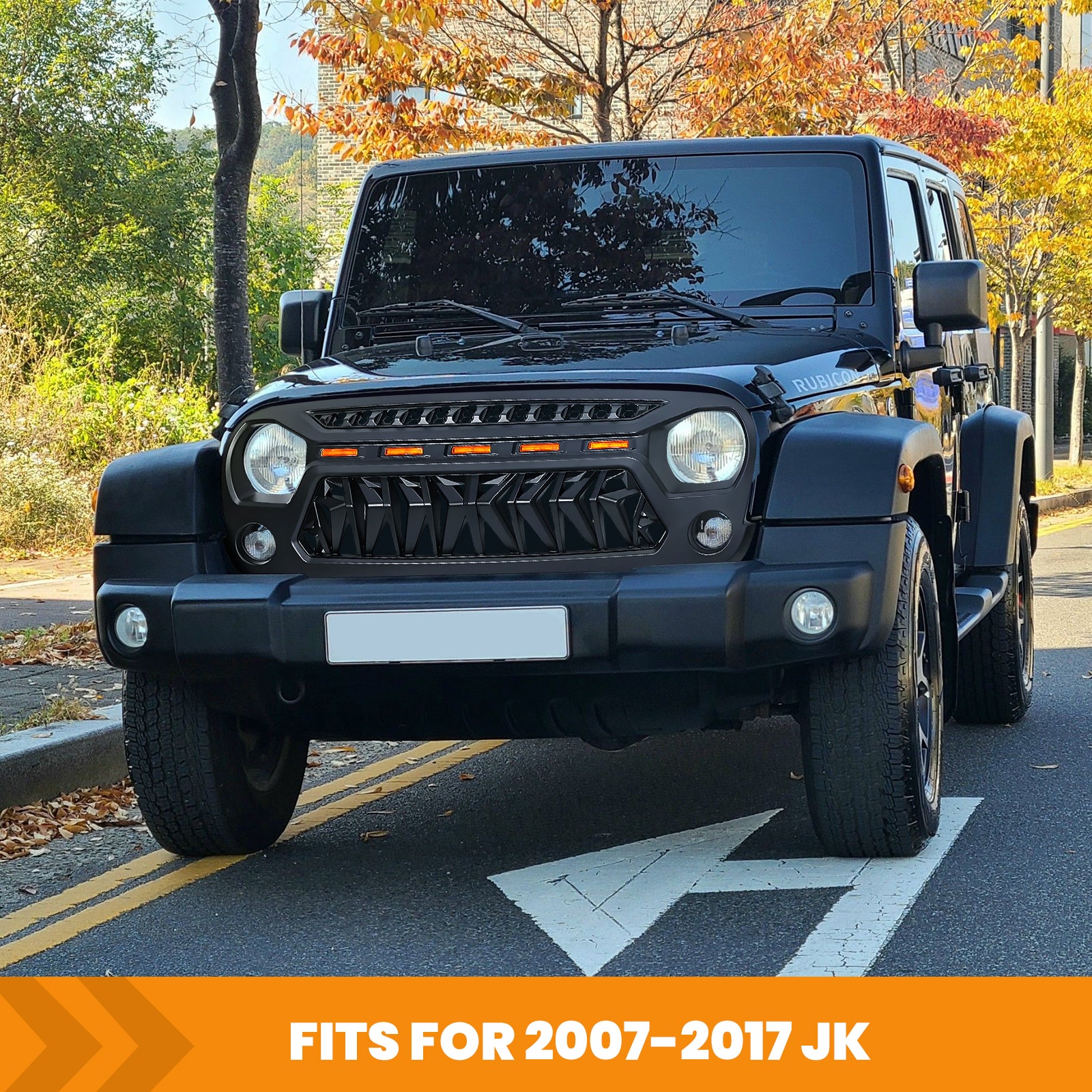 Front Matte Black Grille For Jeep Wrangler Jk 2007 2017 With Led Lights Black Abs
