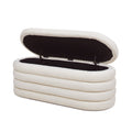 Fuji 49" Upholstered Oval Storage Bench, Ivory White Boucle White Foam Boucle