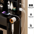 Full Body Mirror Cabinet Round Mirror Led Vanity Table Cushioned Stool, With 2 Ac 2 Usb Power Station,17" Diameter Led Mirror, Touch Control, 3 Color, Brightness Adjustable, Large Desktop Black Mdf
