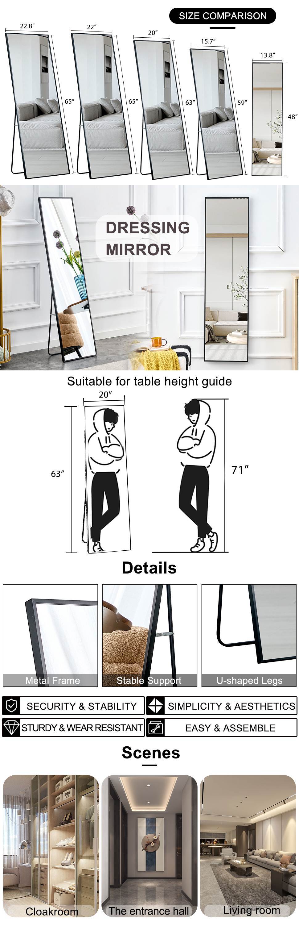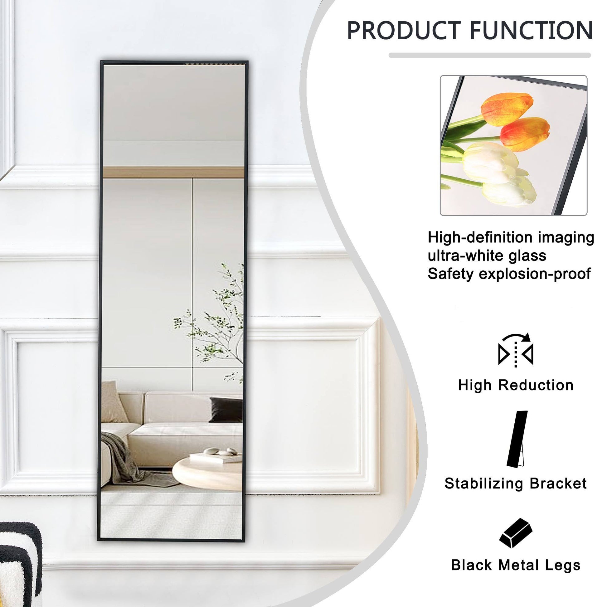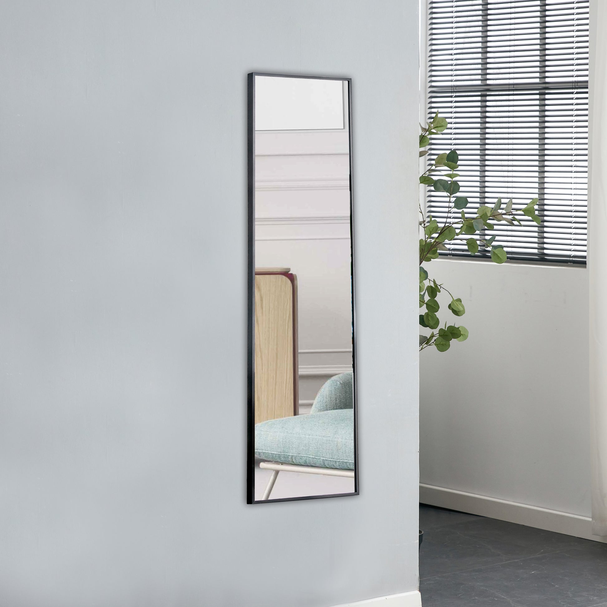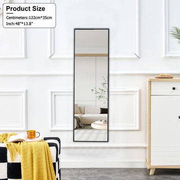 Full Length Mirror Aluminium Alloy Metal Frame Wall Mounted Full Body Mirror ,Bathroom Vanity Mirror, Bedroom Home Porch, Decorative Mirror, Clothing Store Black 48"*13.8"W115158169 Black Glass