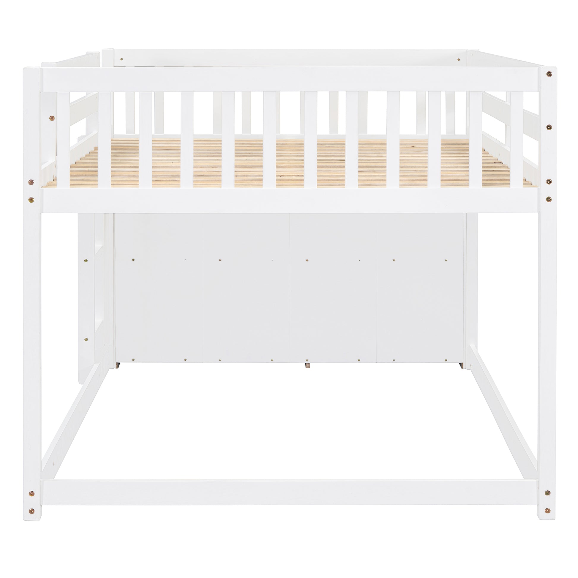 Full Over Full Bunk Bed With 4 Drawers And 3 Shelves White Full White Solid Wood