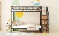 Full Over Full Metal Bunk Bed With Lateral Storage Ladder And Wardrobe, Black Black Iron
