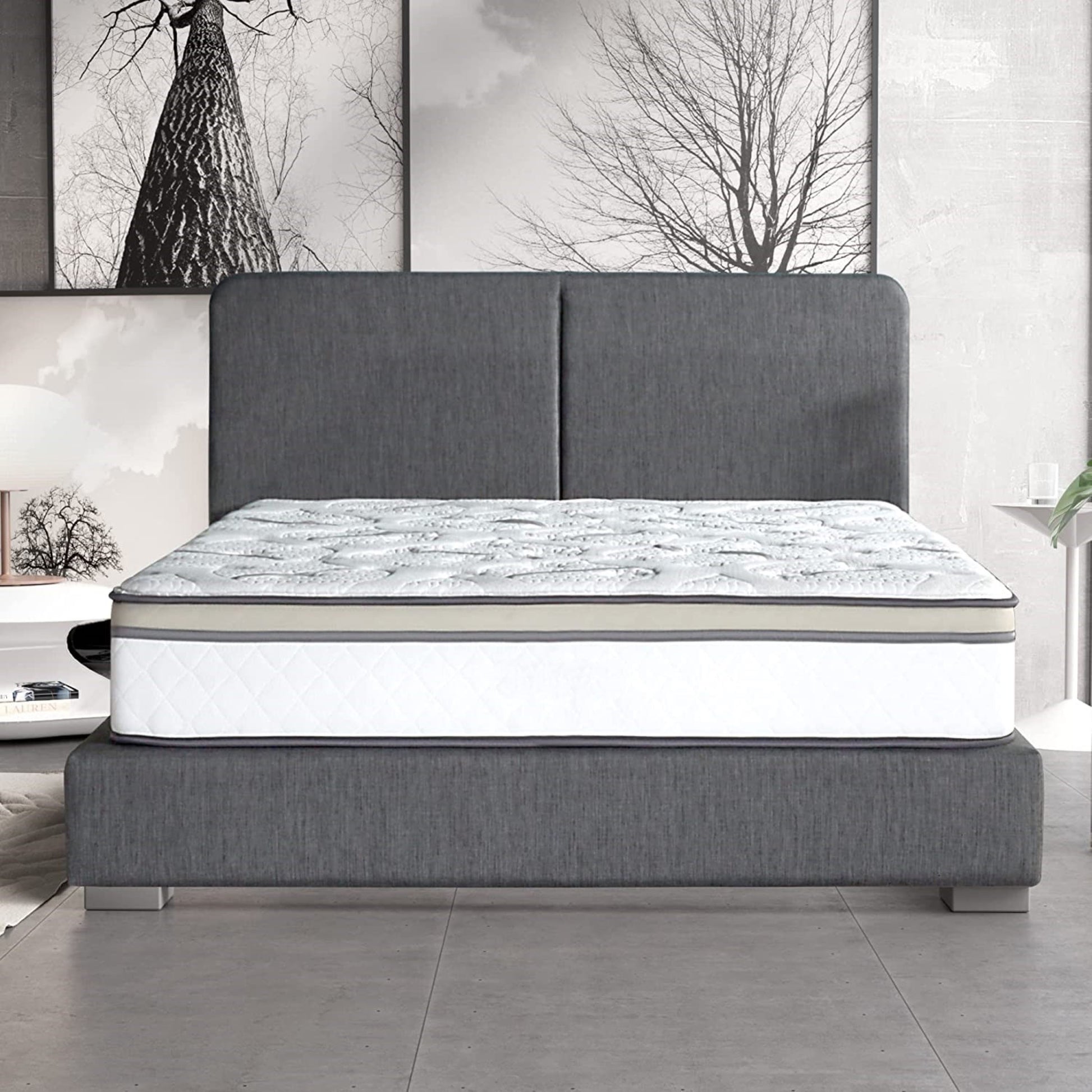 Full Size 10" Majestic Medium Pillow Top Cool Gel Memory Edge Support Pocket Spring Hybrid Mattress White Gray Bedroom Foam Spring Full