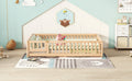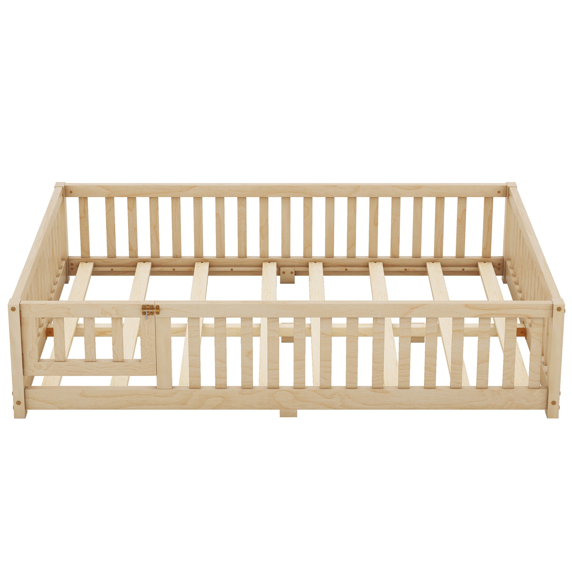 Full Size Bed Floor Bed With Safety Guardrails And Door For Kids, Natural Old Sku: W158090693 Full Natural Pine