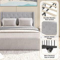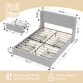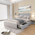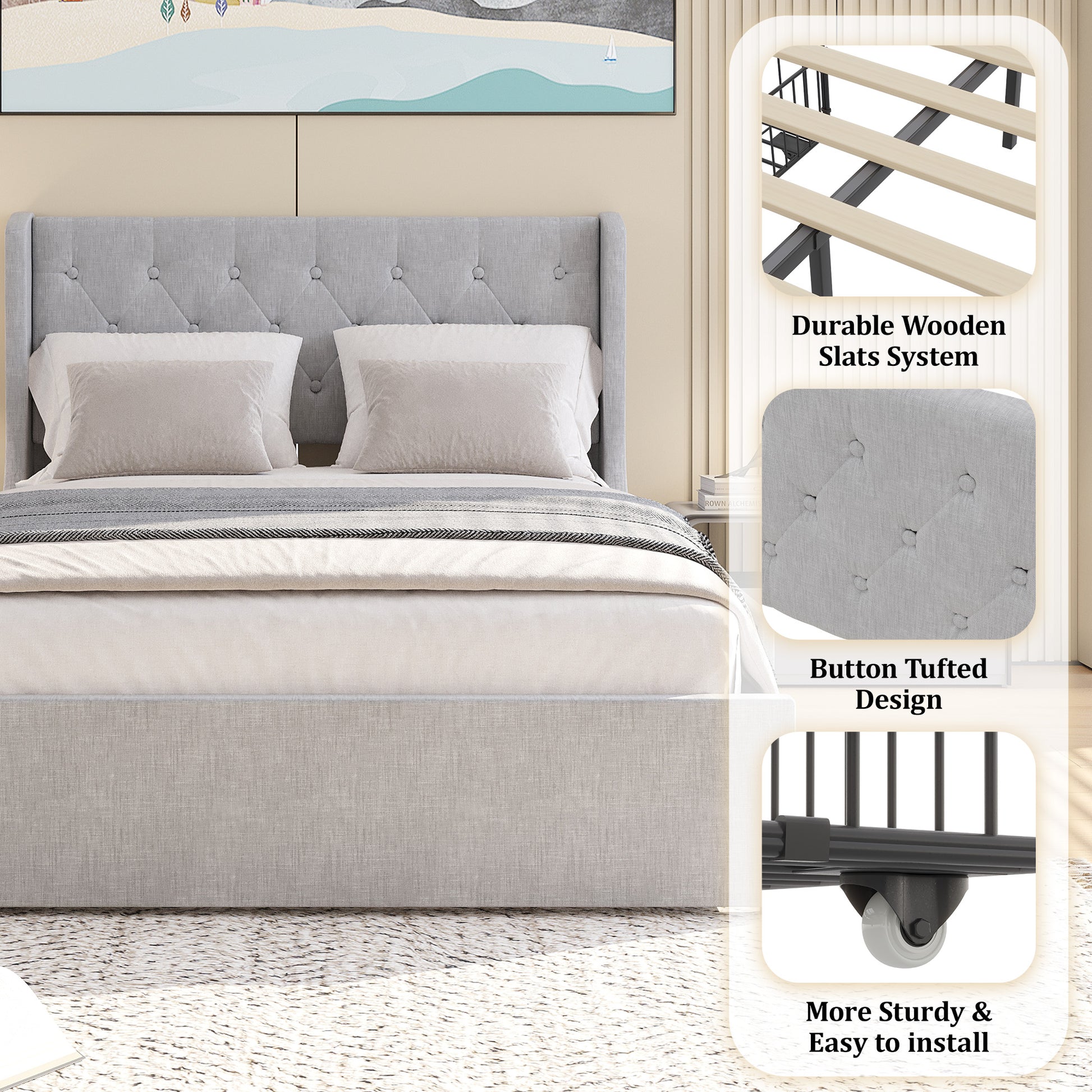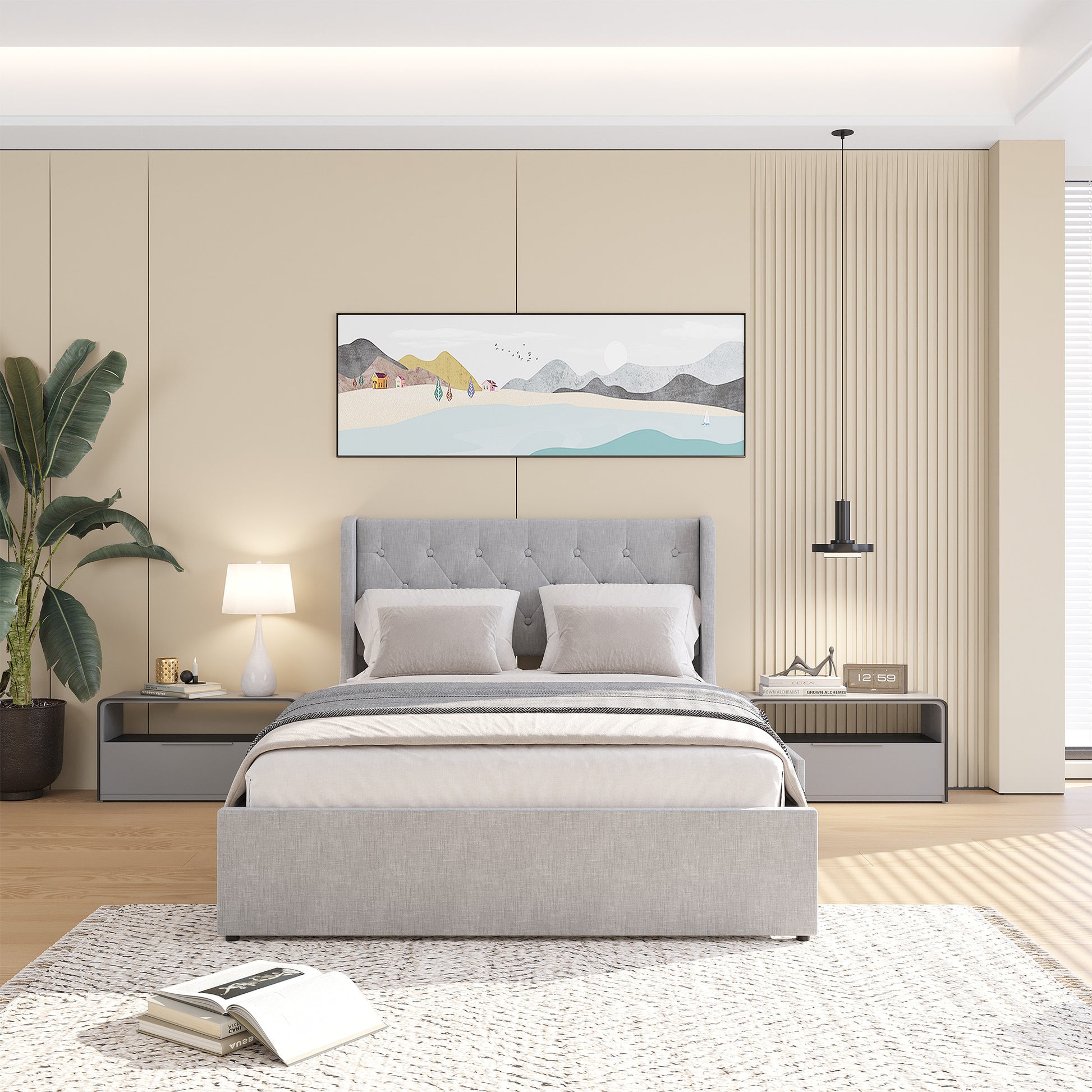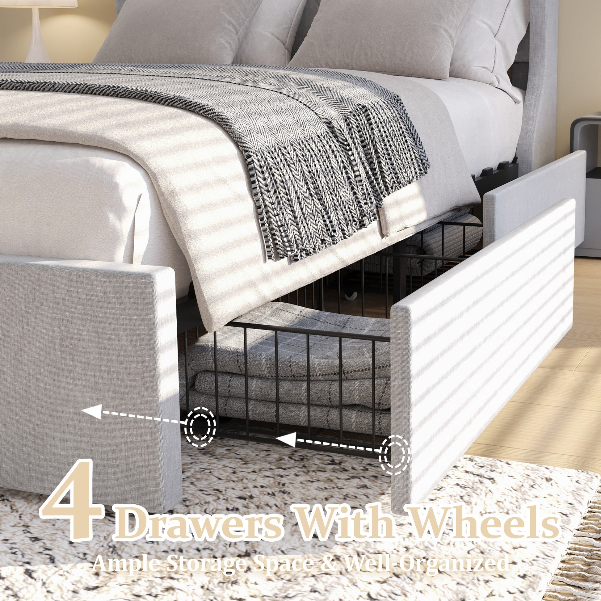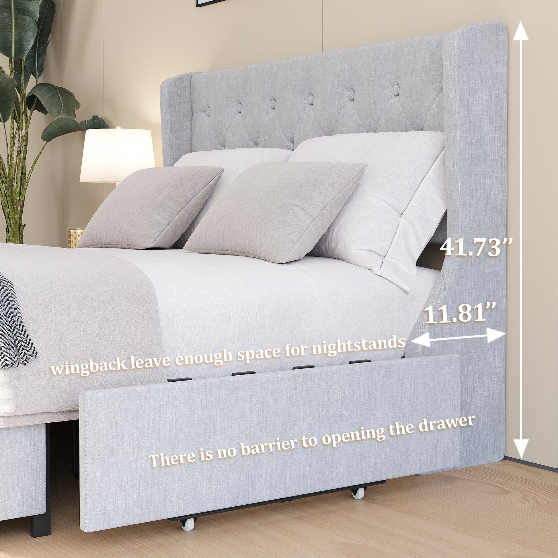 Full Size Bed Frame With 4 Storage Drawers And Wingback Headboard, Button Tufted Design, Light Grey Full Grey Iron,Linen