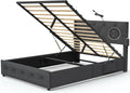 Full Size Bed Frame With Gas Lift Storage Bed With Modern Wingback Headboard, Usb Ports Box Spring Not Required Full Dark Gray Metal Bedroom Contemporary Bed Frame Foam Linen Upholstered