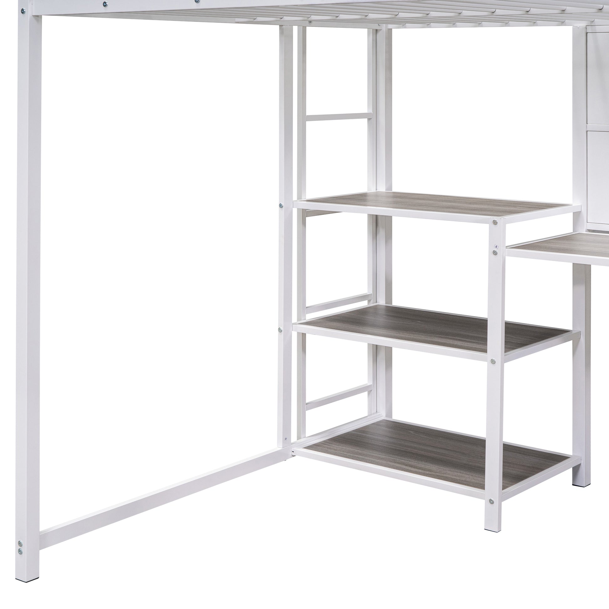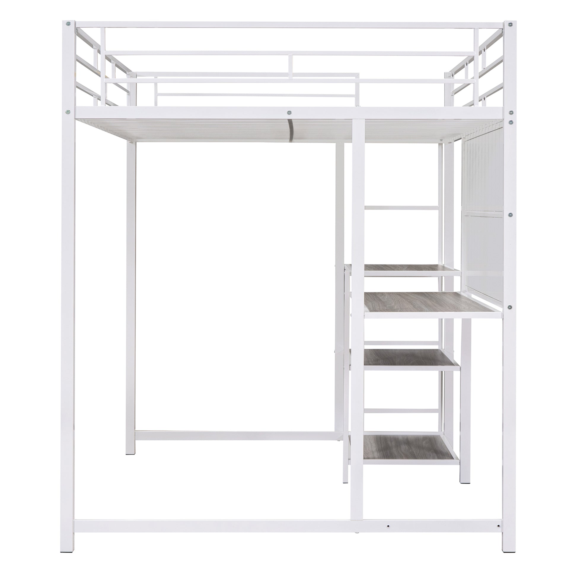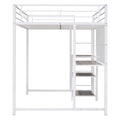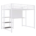 Full Size Loft Bed With Desk And Whiteboard, Metal Loft Bed With 3 Shelves And Ladder, White White Steel