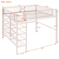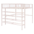 Full Size Metal Loft Bed With 4 Tier Shelves And Storage, Pink Full Pink Metal