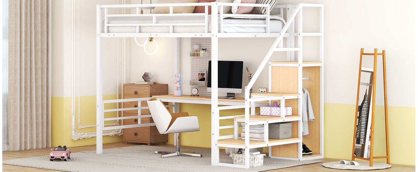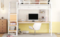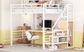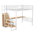 Full Size Metal Loft Bed With Desk, Storage Staircase And Small Wardrobe, Storage Stairs Can Be Installed Left And Right, White Box Spring Not Required Full White Metal Bedroom Bed Frame Metal