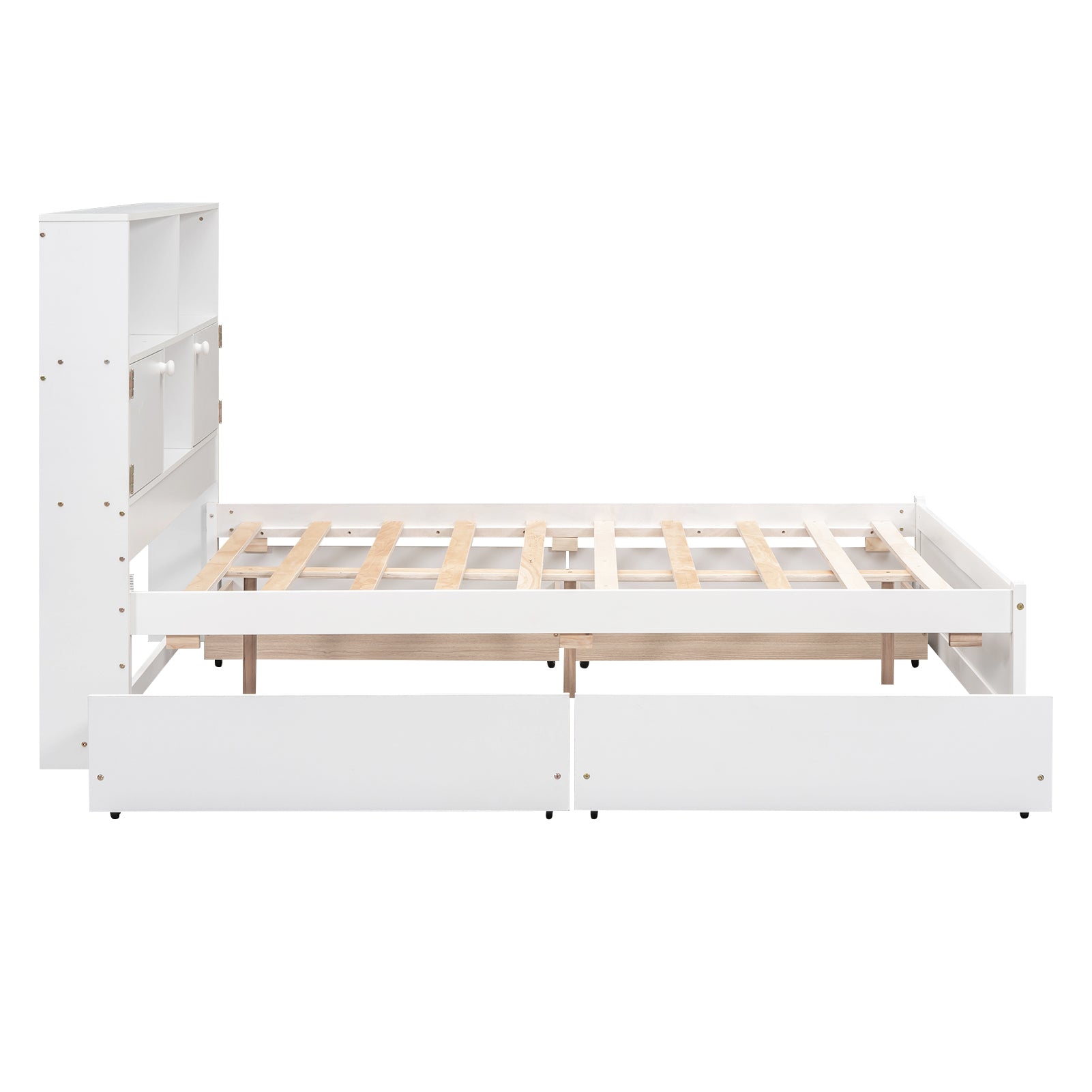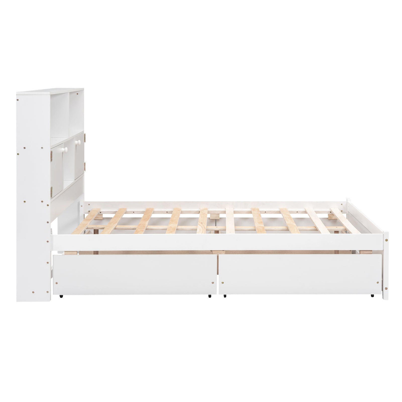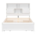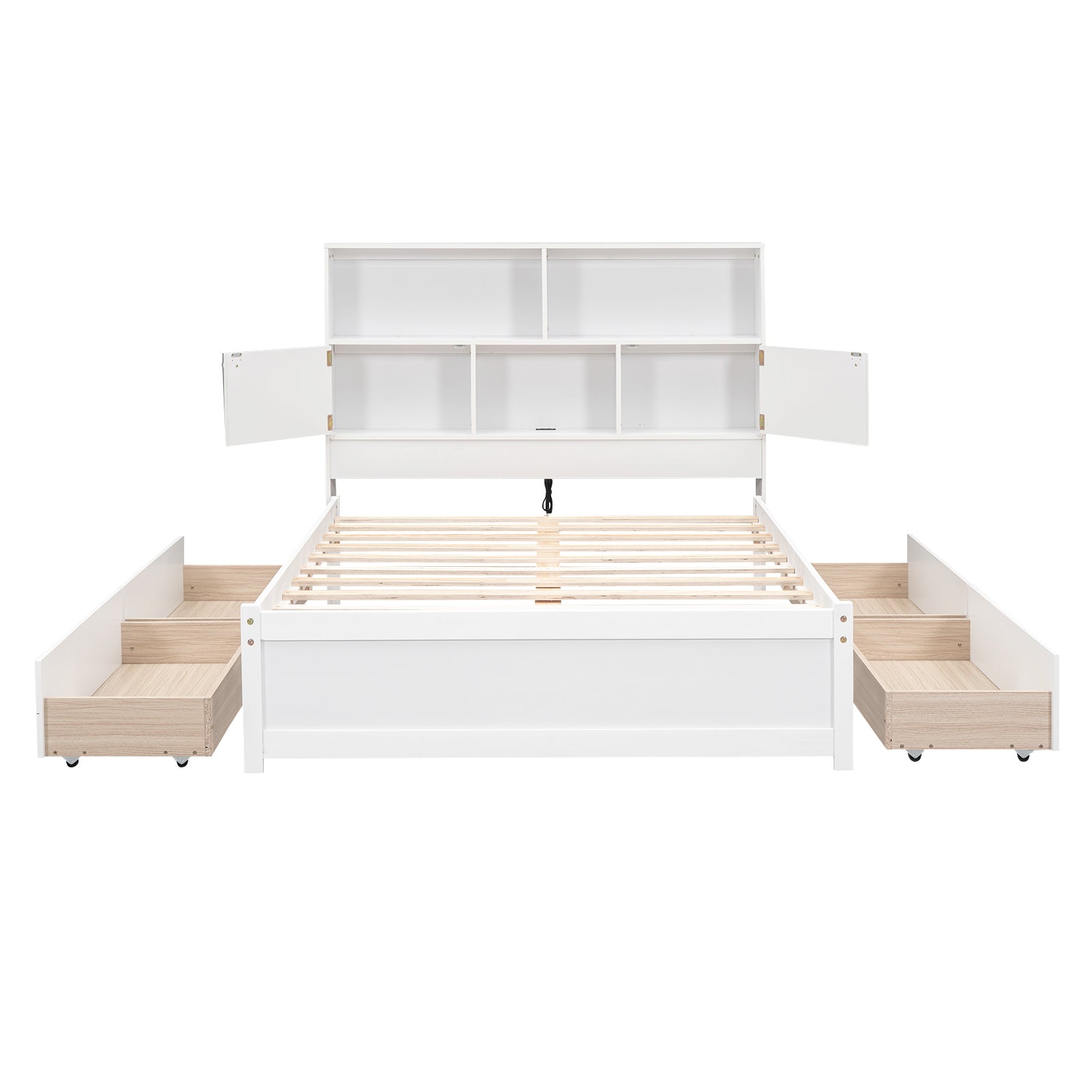 Full Size Platform Bed With Storage Headboard, Charging Station And 4 Drawers, White Box Spring Not Required Full White Wood Bedroom Bed Frame Solid Wood Mdf