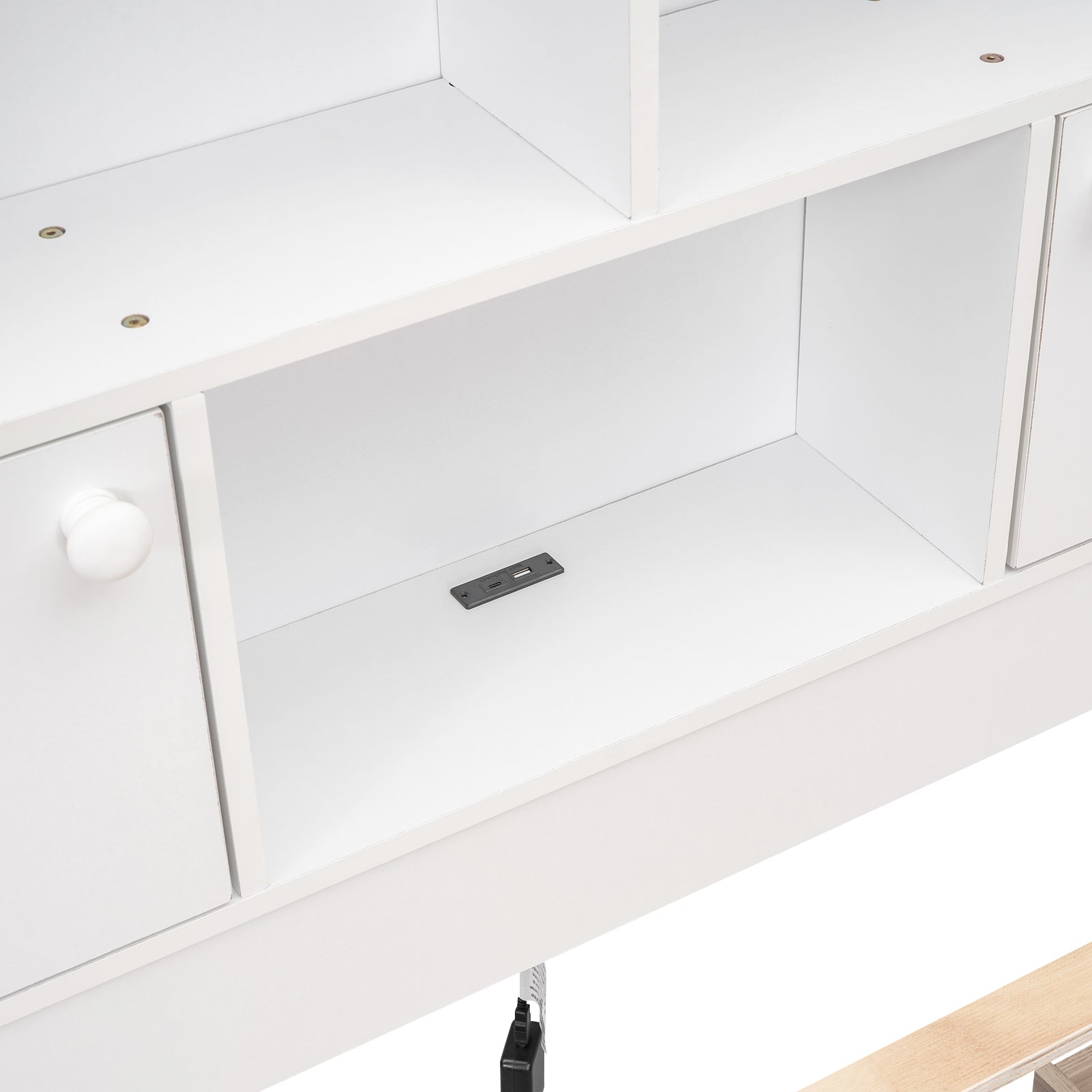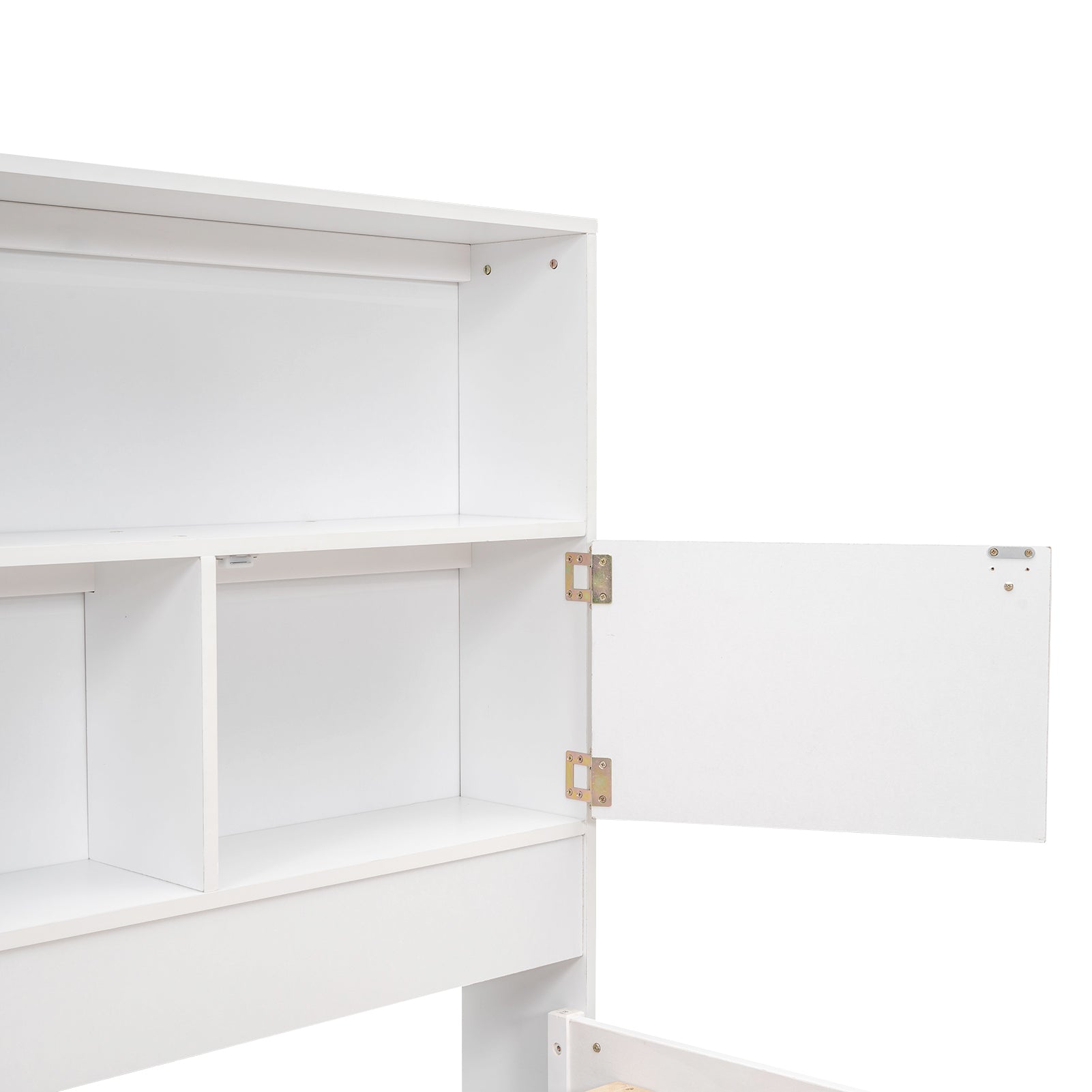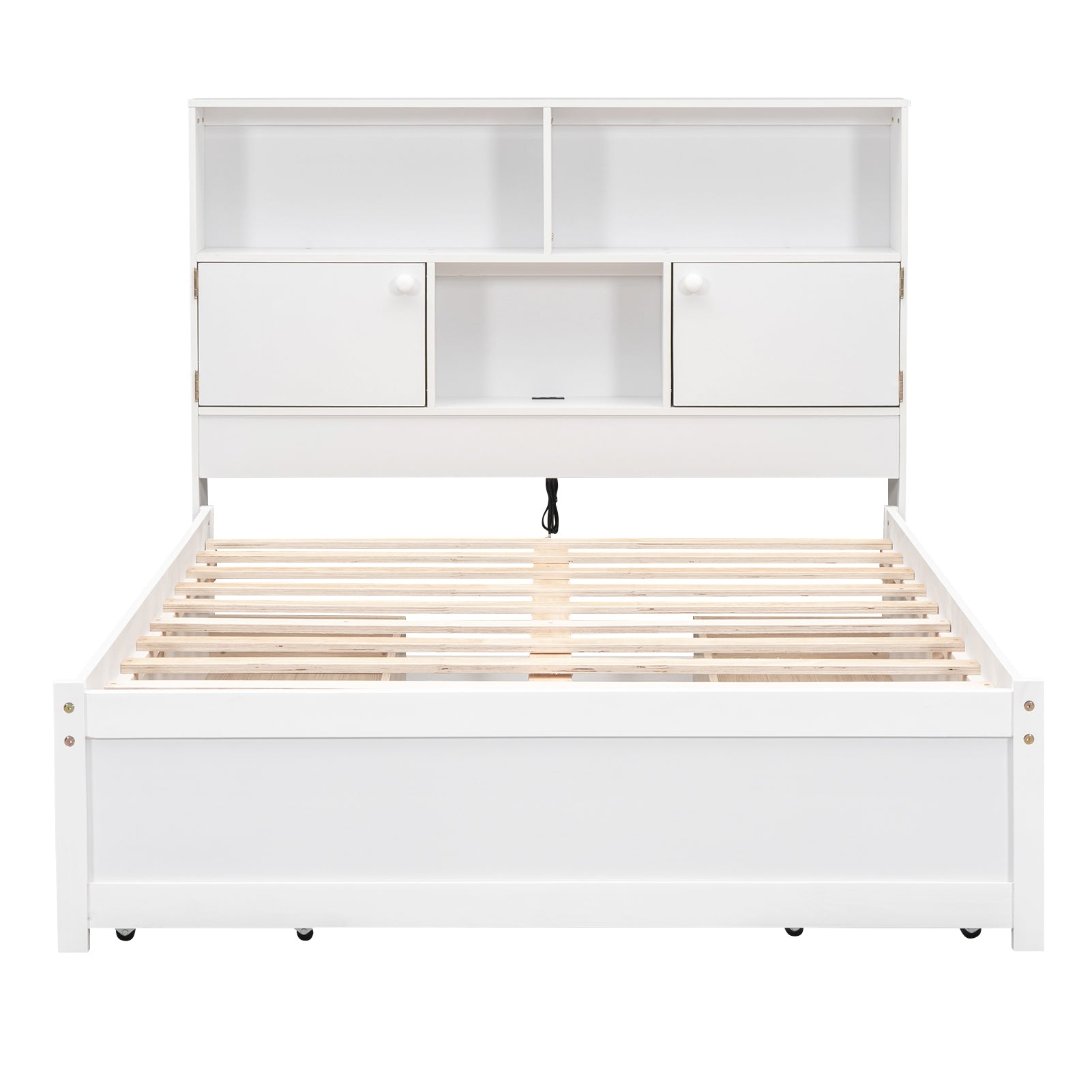 Full Size Platform Bed With Storage Headboard, Charging Station And 4 Drawers, White Box Spring Not Required Full White Wood Bedroom Bed Frame Solid Wood Mdf