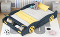 Full Size Race Car Shaped Platform Bed With Wheels And Storage, Dark Blue Yellow Box Spring Not Required Full Dark Blue Wood Bedroom Bed Frame Solid Wood Mdf
