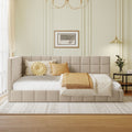 Full Size Upholstered Daybed Sofa Bed Frame Beige, Velvet Beige Upholstered