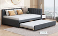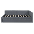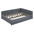 Full Size Upholstered Daybed With Trundle Sofa Bed Frame No Box Spring Needed, Linen Fabric Gray Gray Linen