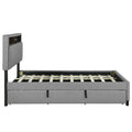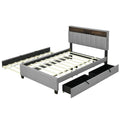 Full Size Upholstered Platform Bed With Storage Headboard, Twin Size Trundle & 2 Drawers And A Set Of Sockets & Usb Ports, Linen Fabric, Gray Gray Linen