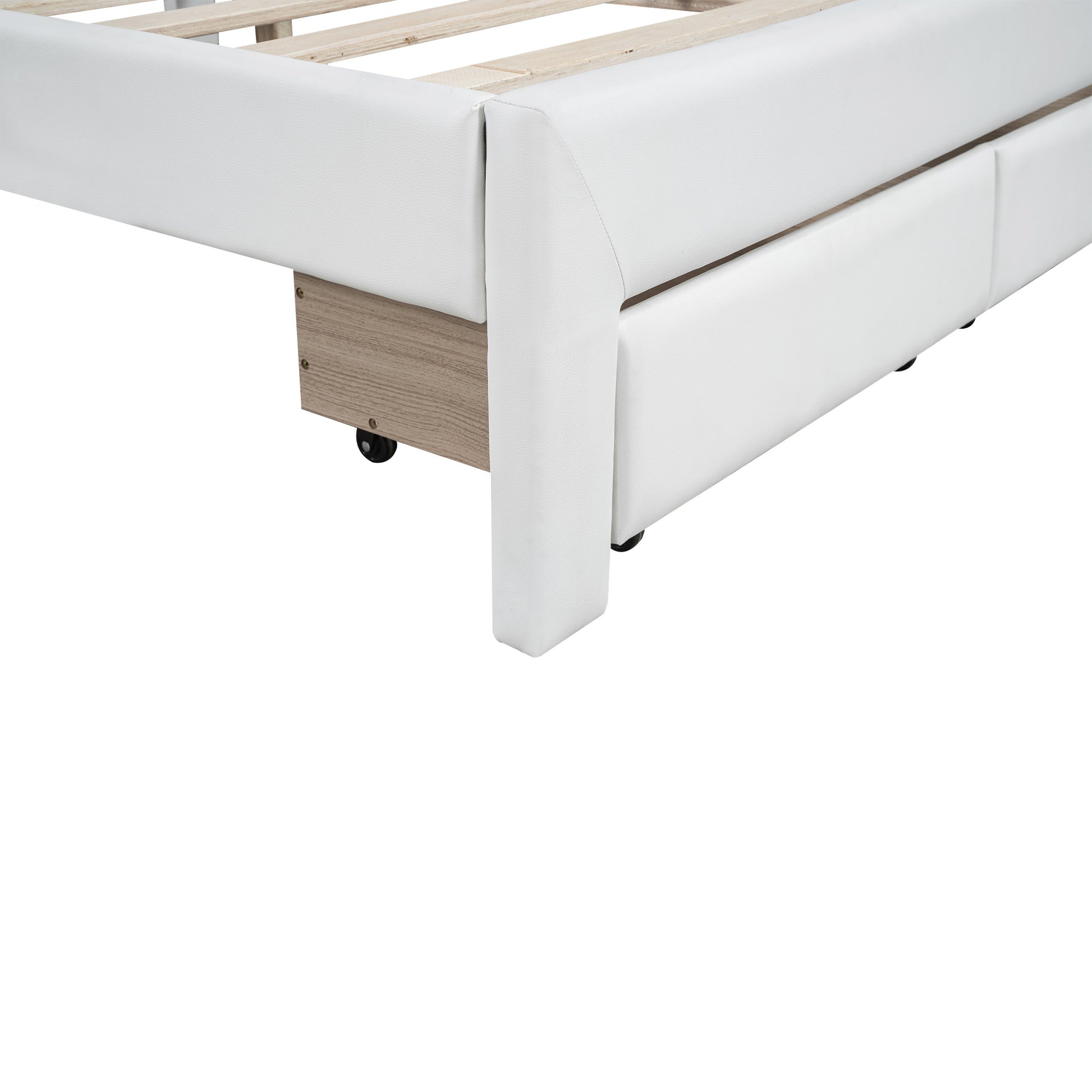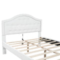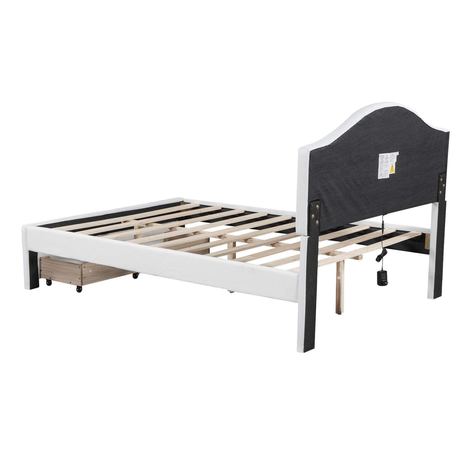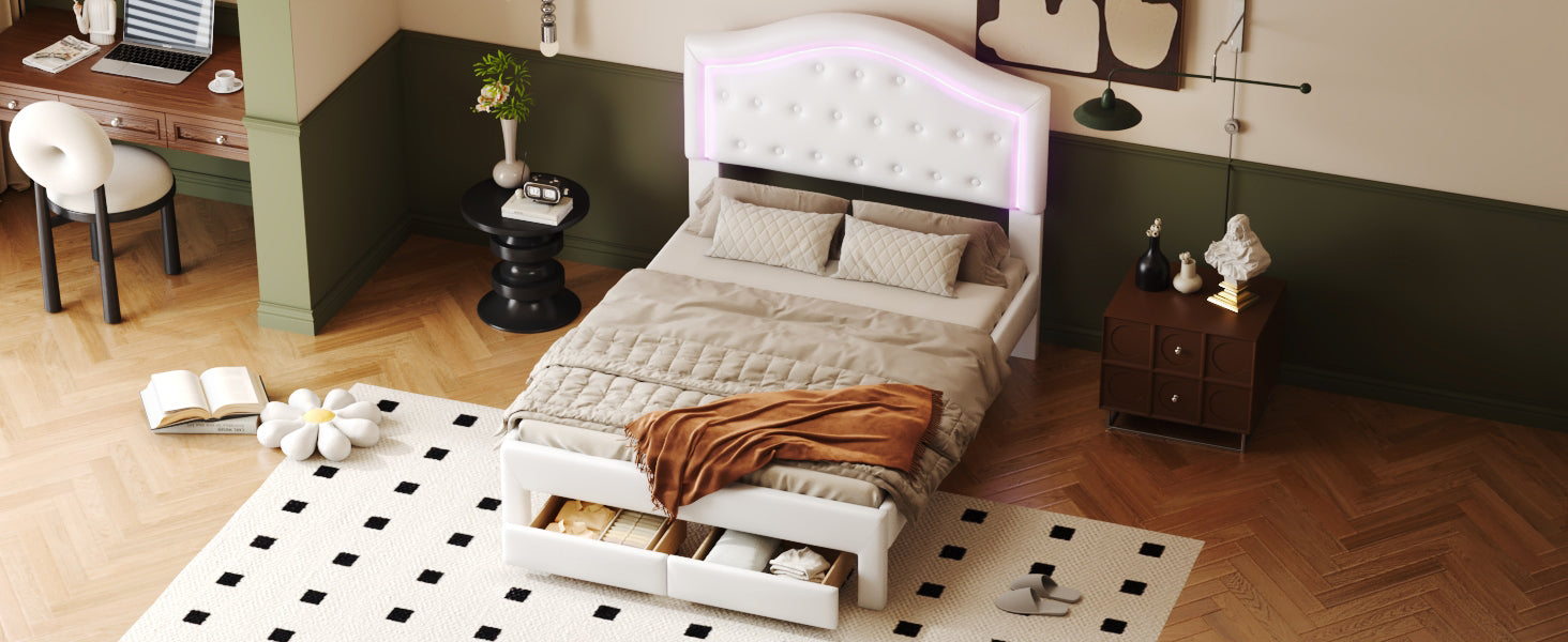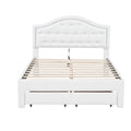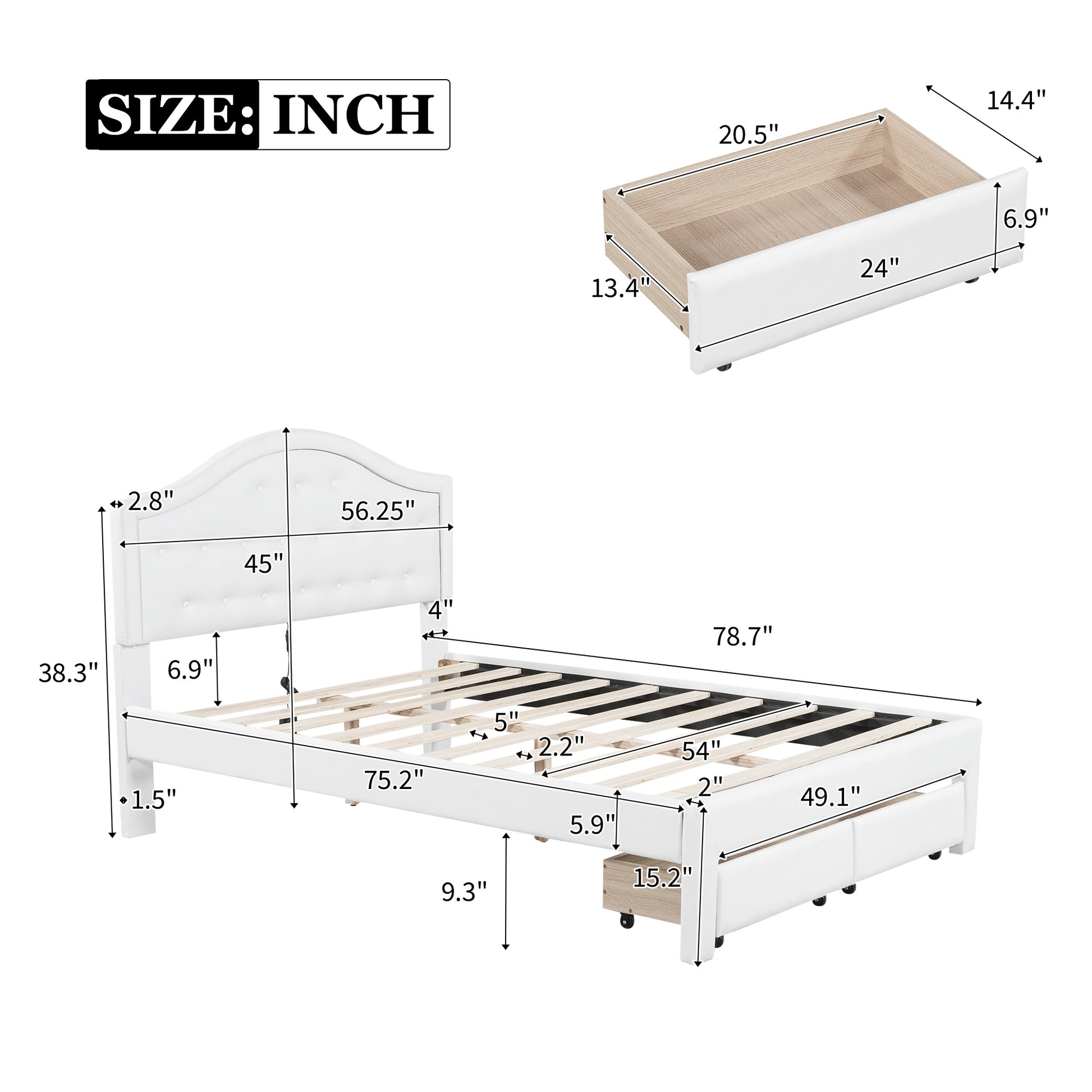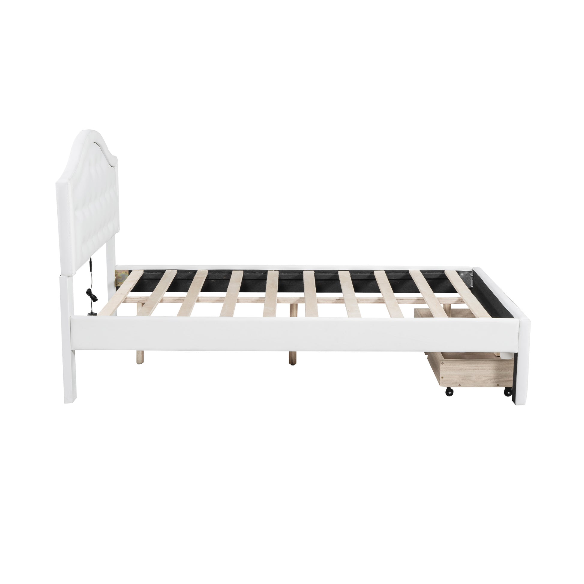 Full Size Upholstered Platform Bed With Tufted Headboard, Led And 2 Drawers, White Box Spring Not Required Full White Wood Bathroom Bed Frame Faux Leather Upholstered