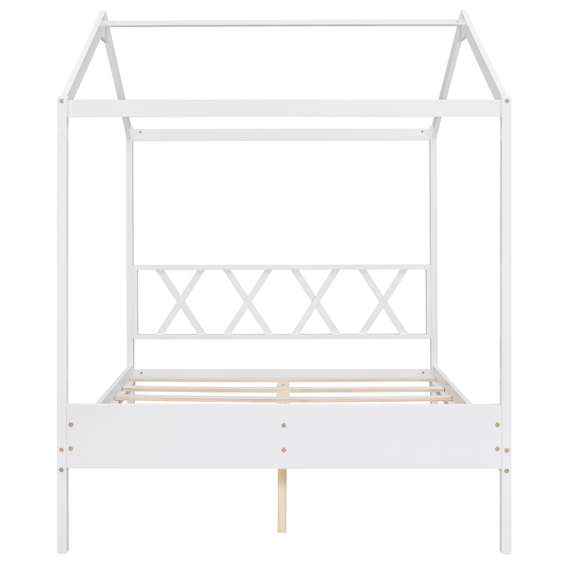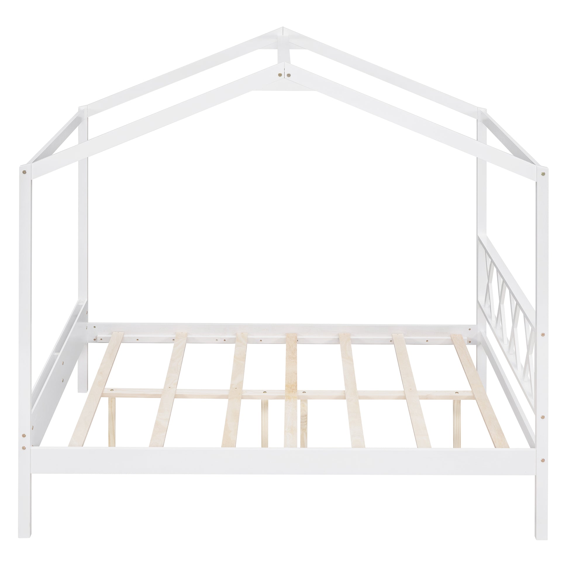 Full Size Wood House Bed With Storage Space, White Old Sku :Lp000002Aak White Solid Wood