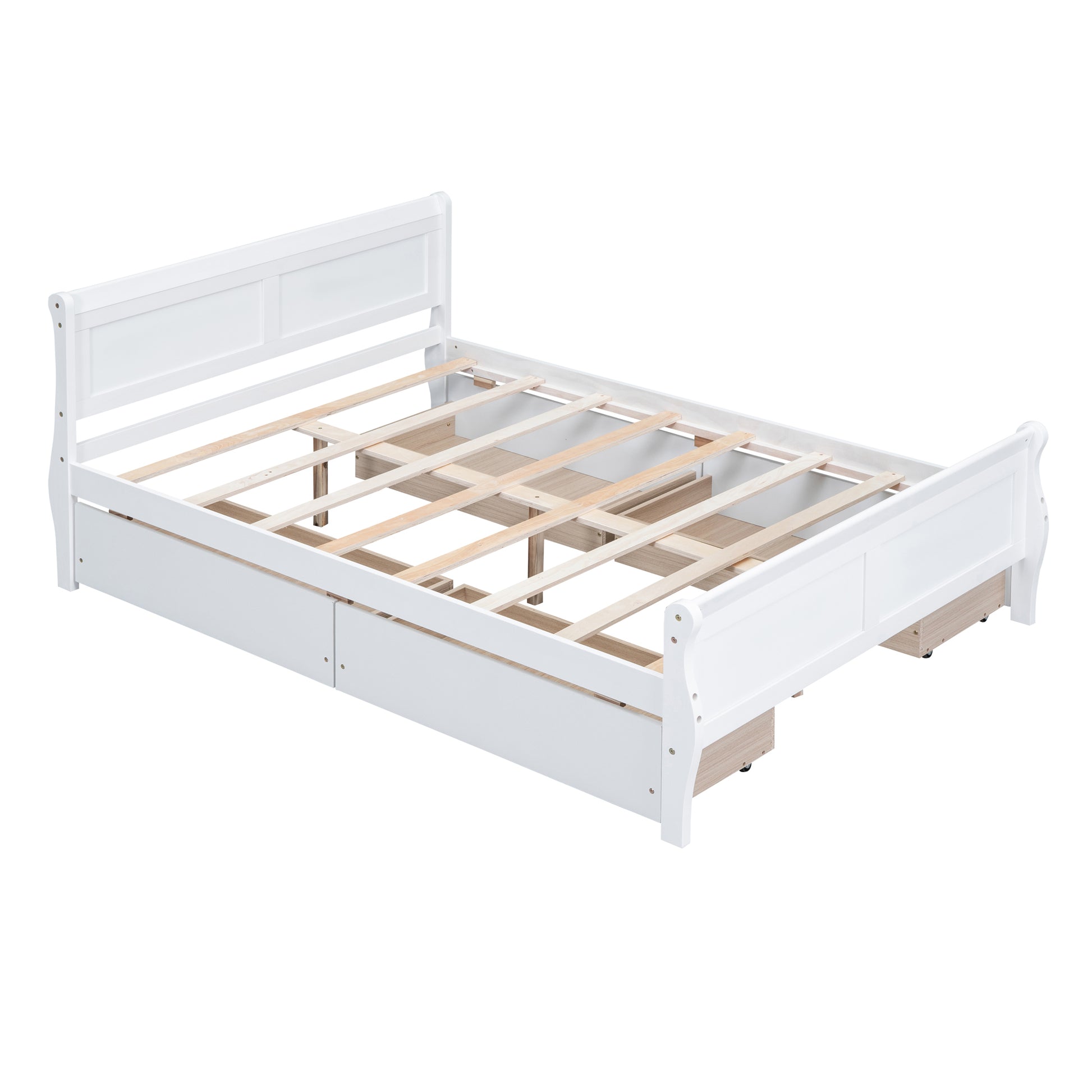 Full Size Wood Platform Bed With 4 Drawers And Streamlined Headboard & Footboard, White White Solid Wood Mdf