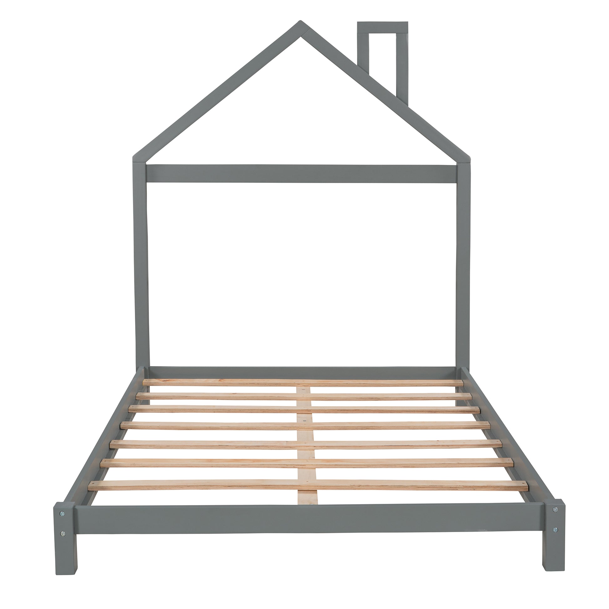 Full Size Wood Platform Bed With House Shaped Headboard Gray Gray Solid Wood