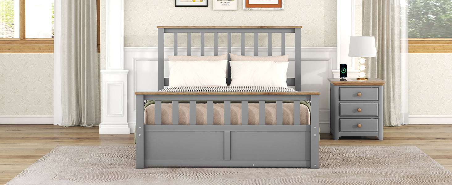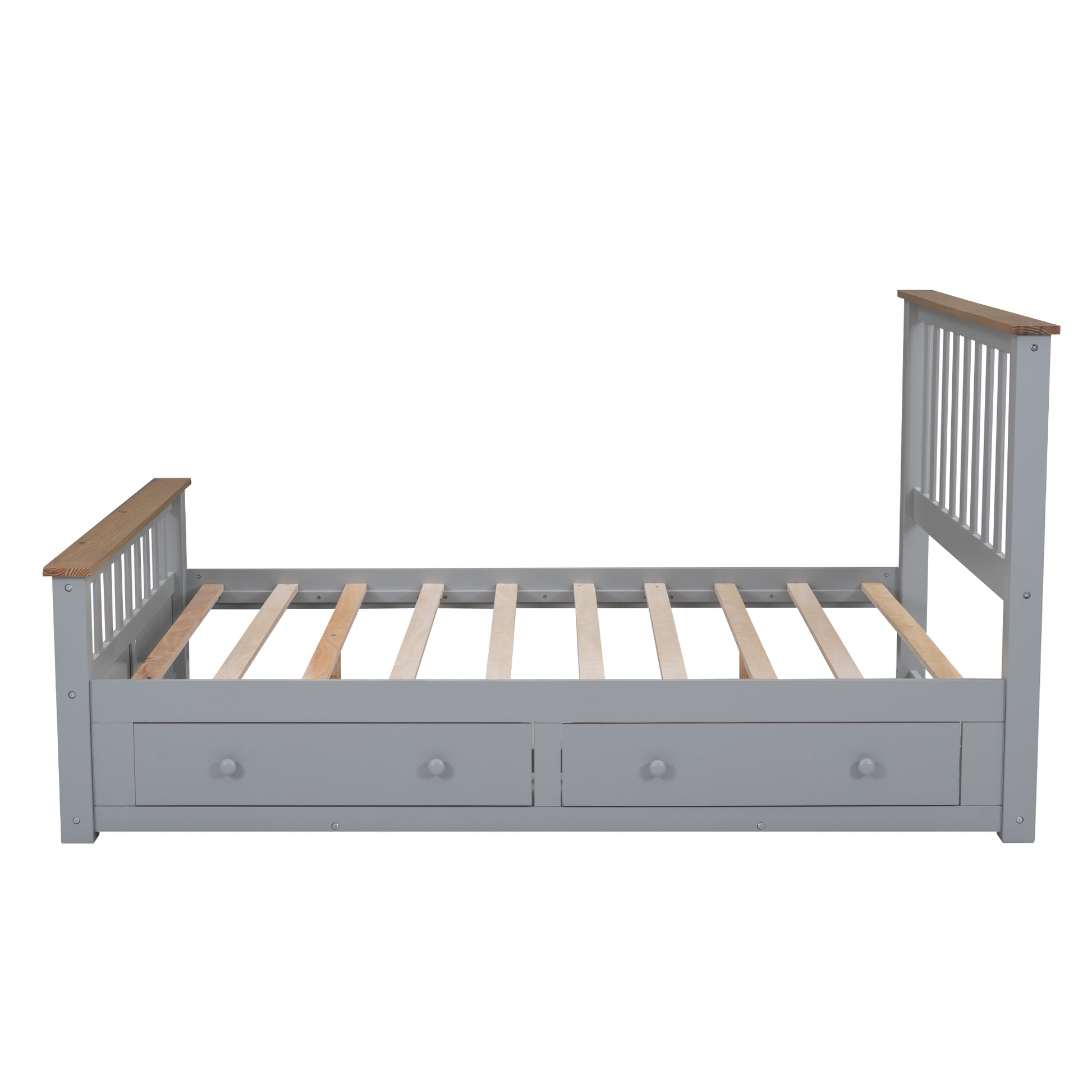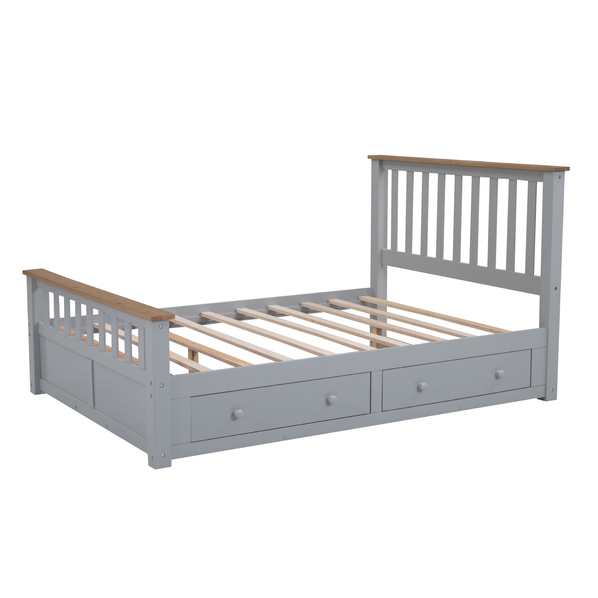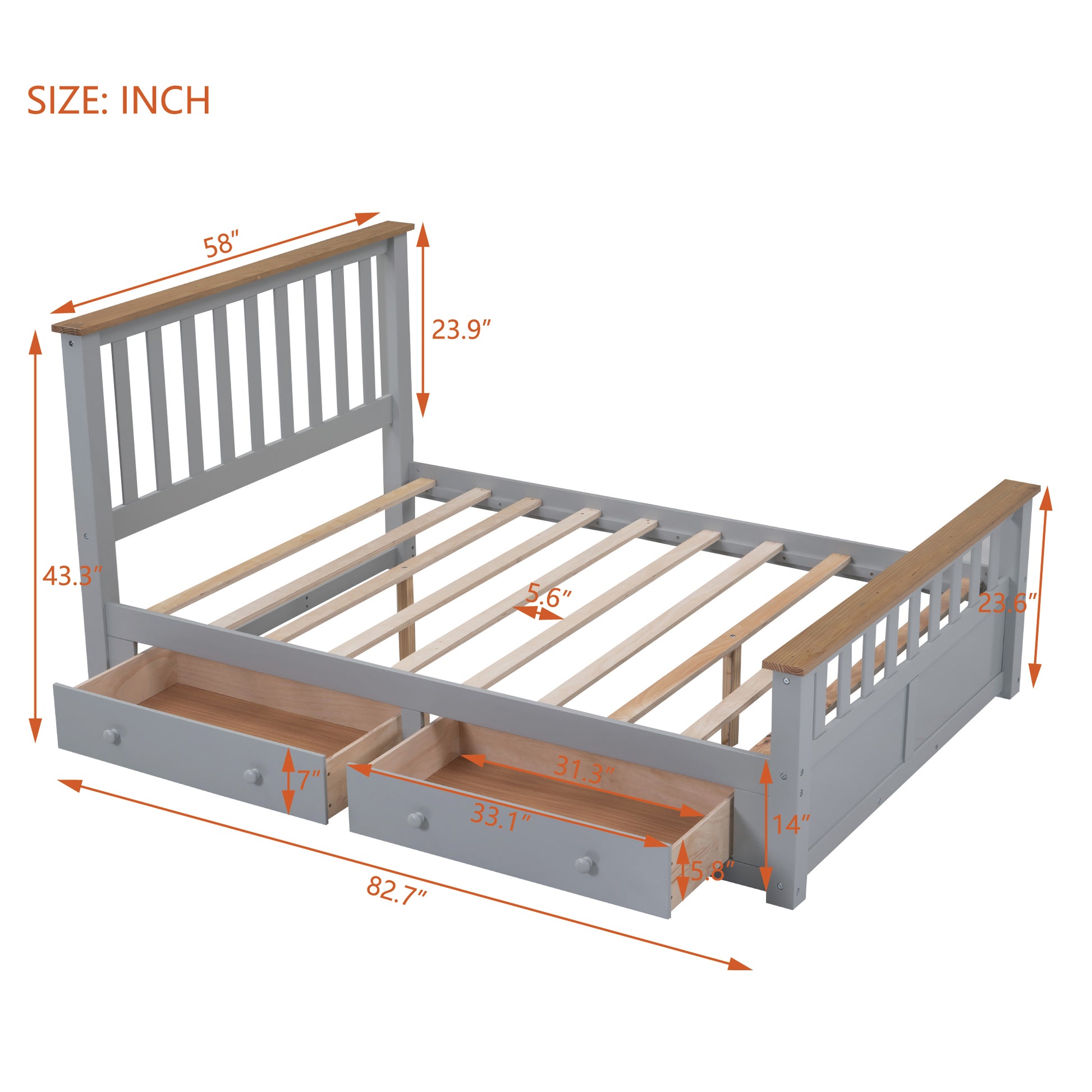 Full Size Wood Platform Bed With Two Drawers And Wooden Slat Support,Gray Natrual Gray Wood