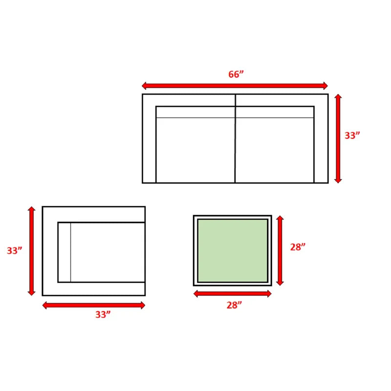 | Table: | 13'' H X 28'' L X 28'' D |