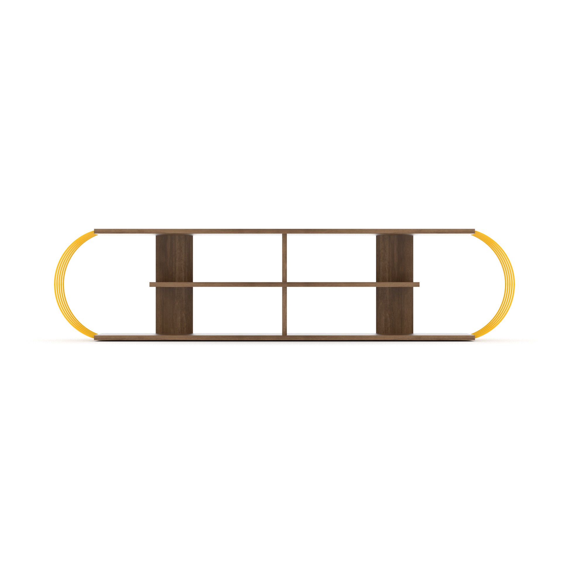 Furnishome Store Mid Century Modern Tv Stand 4 Shelves Open Storage Entertainment Centre 68 Inch Tv Unit, Walnut Yellow Walnut Solid Wood