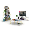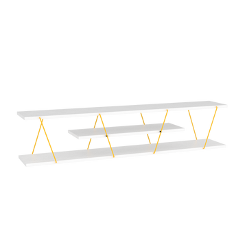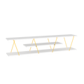Furnishome Store Tars Mid Century Modern Tv Stand 4 Shelves Open Storage Metal Cords Entertainment Centre 56 Inch Low Tv Unit, White Yellow White Solid Wood