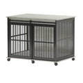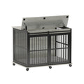 Furniture Dog Crate Sliding Iron Door Dog Crate With Mat. Grey,43.7''W X 30''D X 33.7''H Grey Dog Particle Board