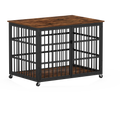 Furniture Style Dog Crate Wrought Iron Frame Door With Side Openings, Rustic Brown, 43.3''W X 29.9''D X 33.5''H. Rustic Brown Particle Board